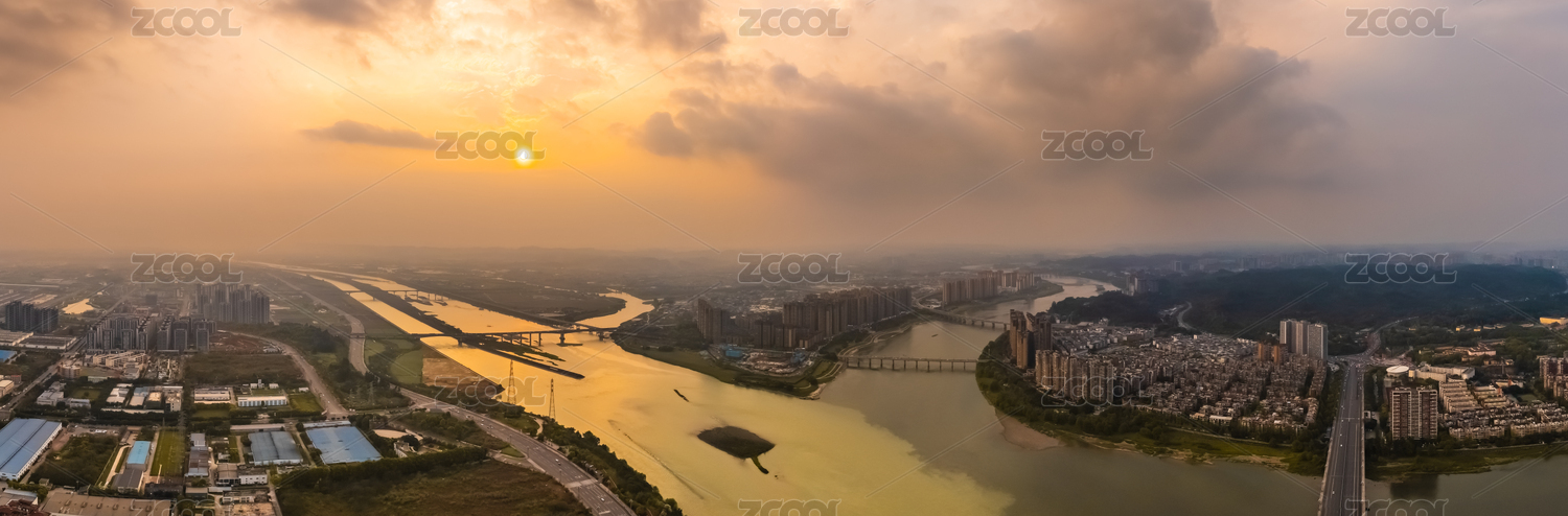 中国四川省乐山市黄昏夕阳大渡河外滩高楼