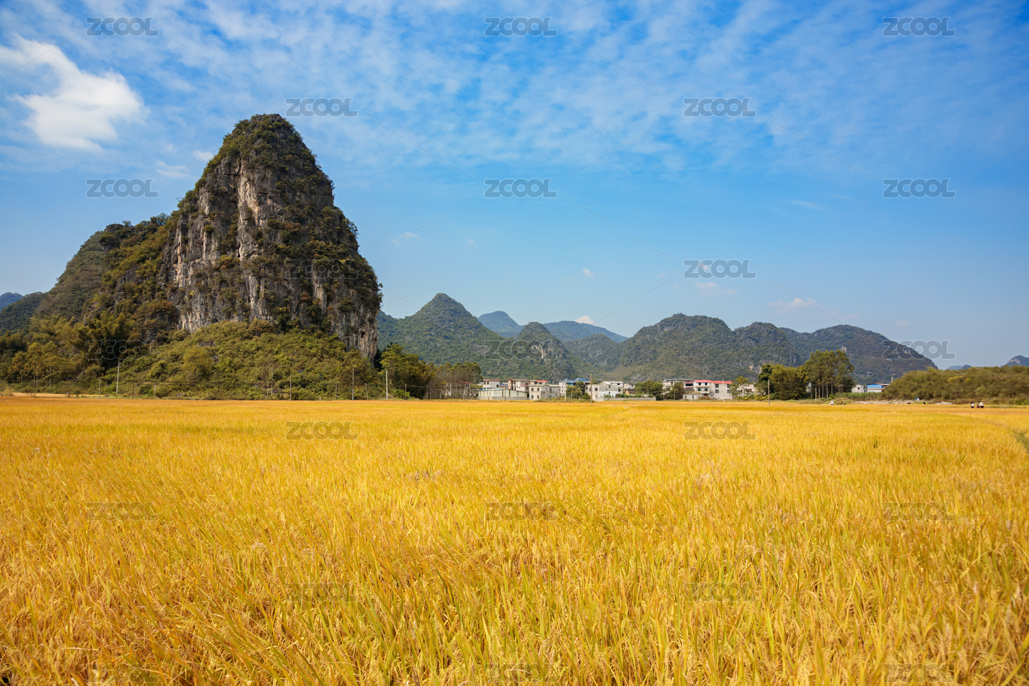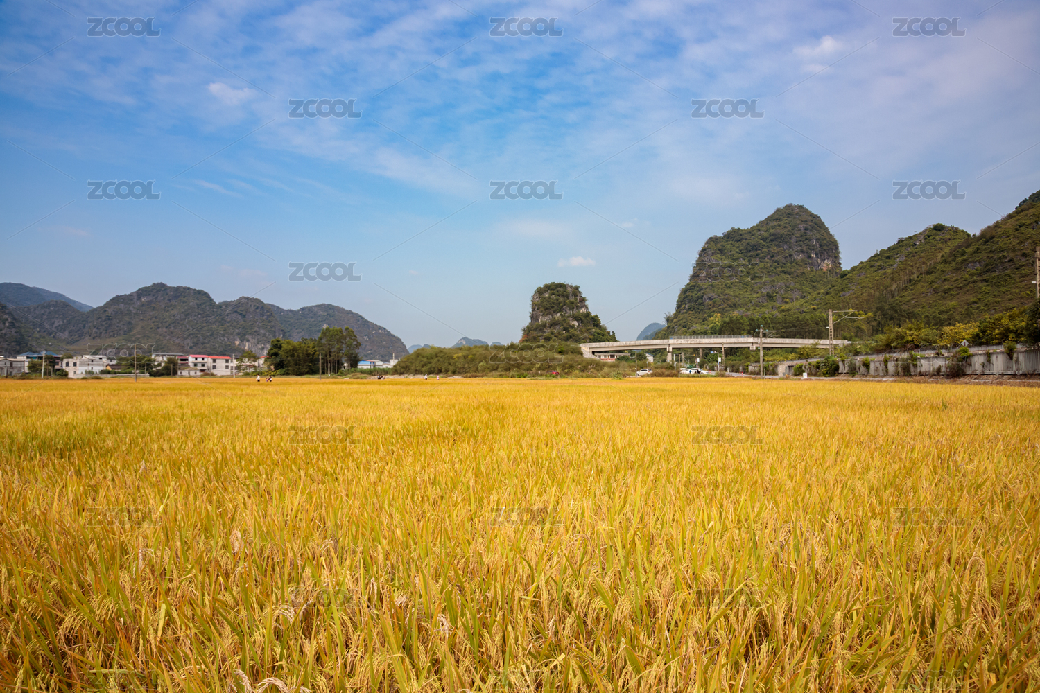 湖南永州宁远县九嶷山下灌村秋天成熟的稻田