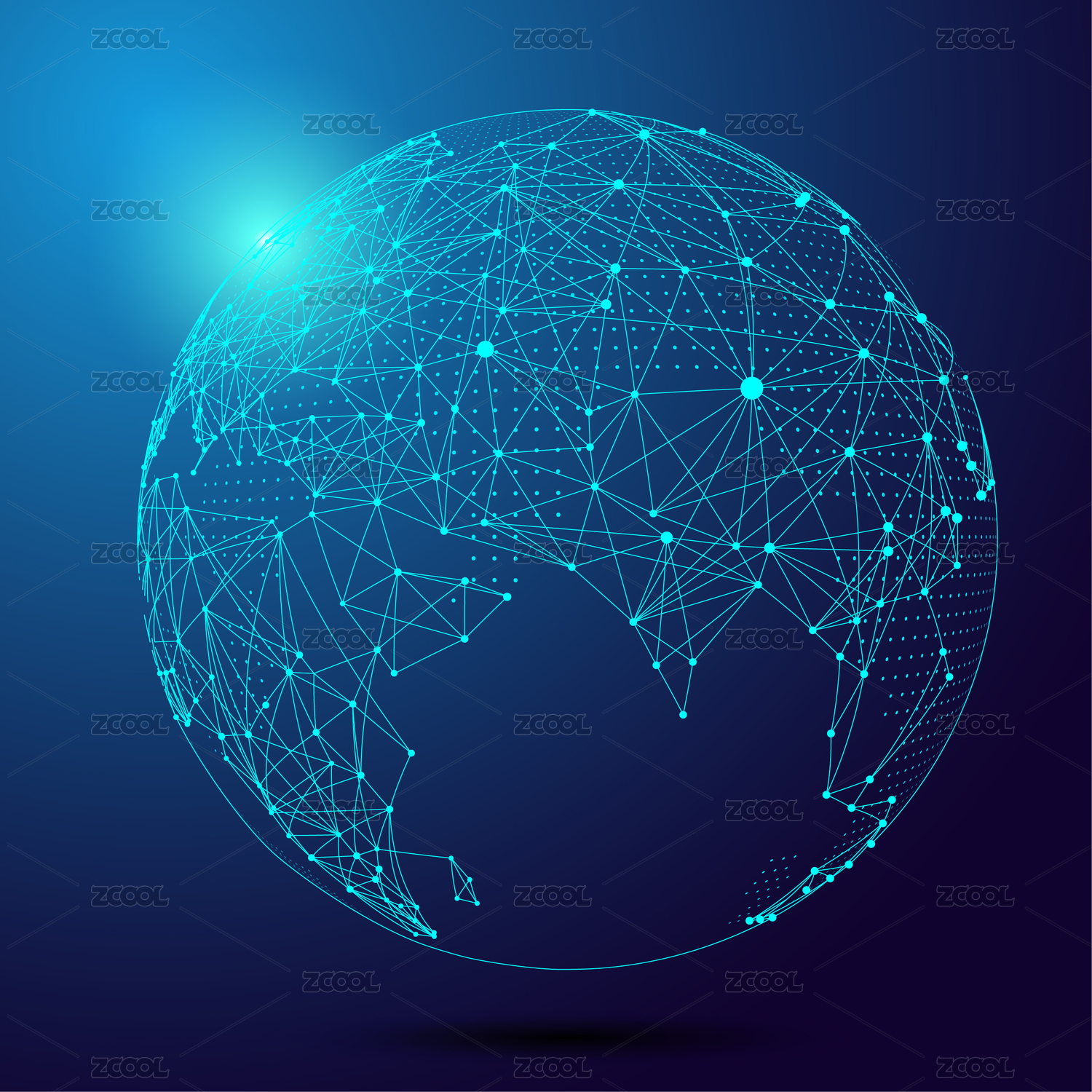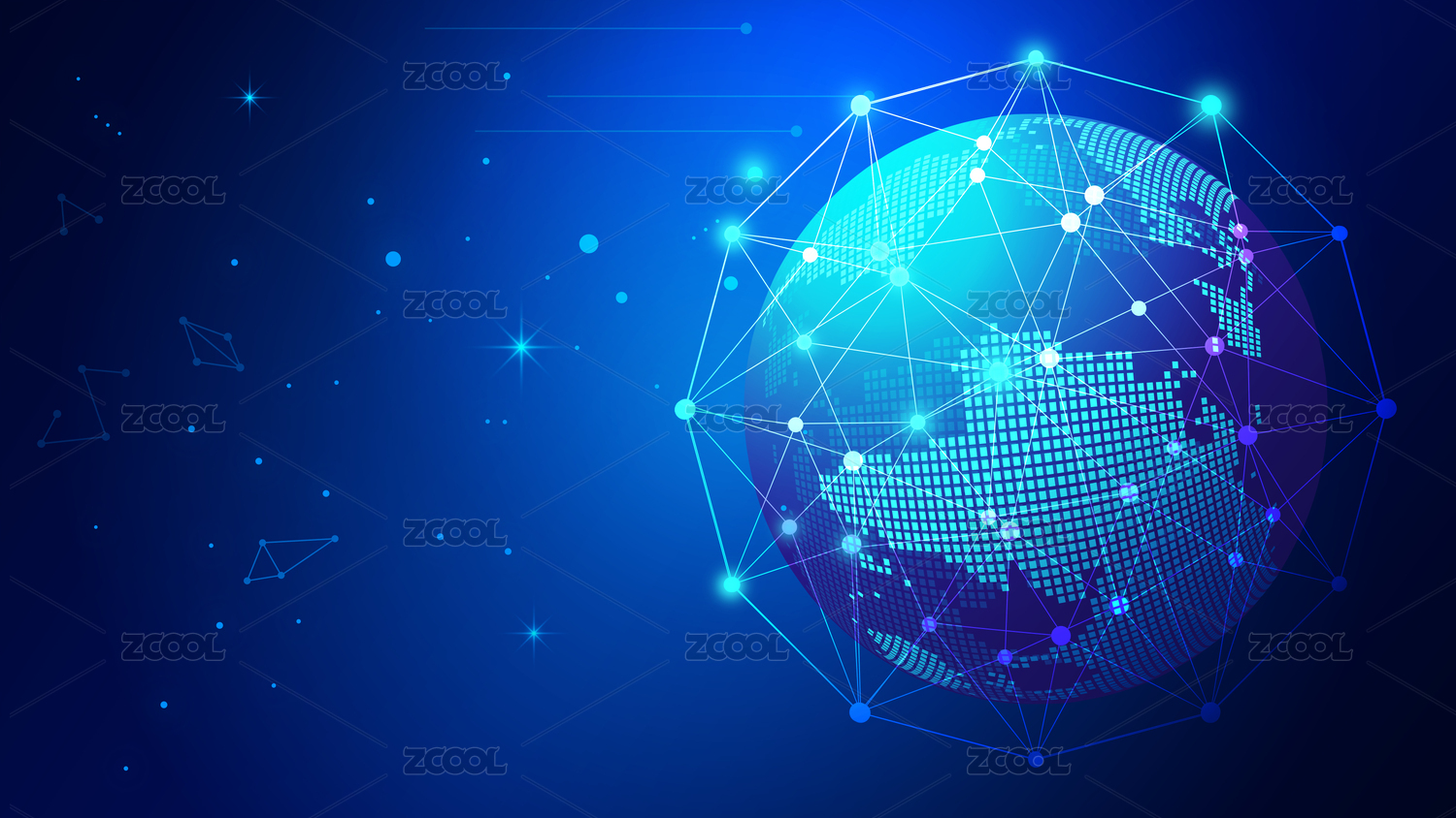 点和线连接组成的抽象地球,代表互联网、高科技,全球化、国际化