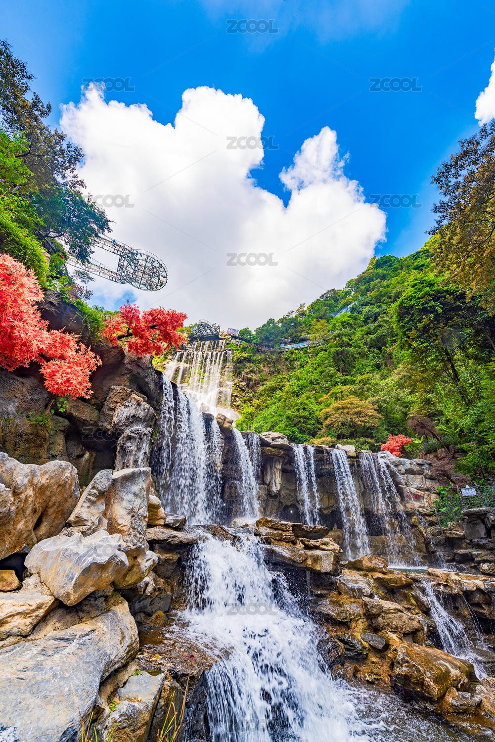 广东,清远,古龙峡,瀑布,山谷,峡谷,水流,阶梯,晴天,蓝天