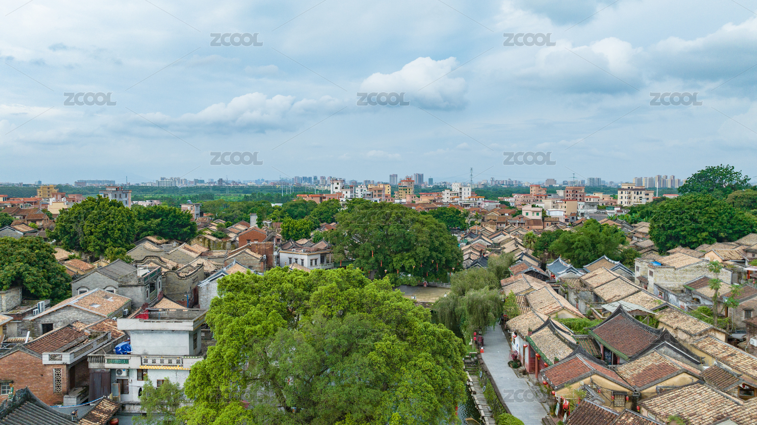 广东东莞茶山镇明清古村落航拍图