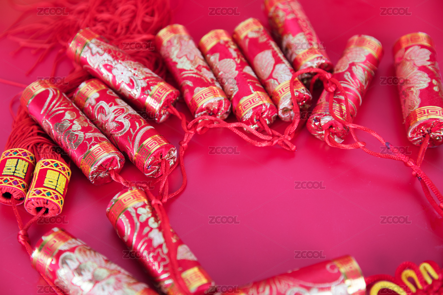 红色背景上的红色节日鞭炮挂件装饰品