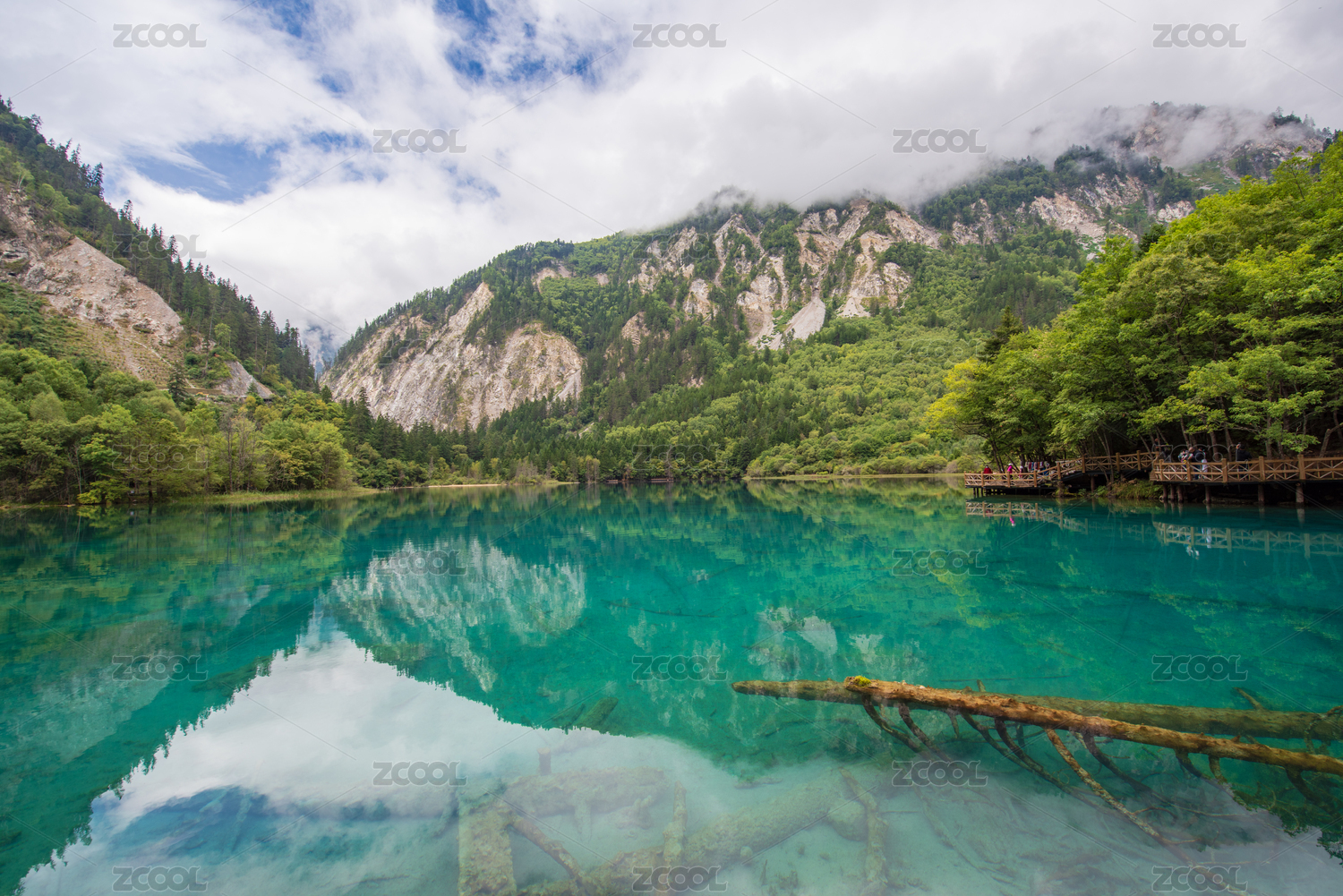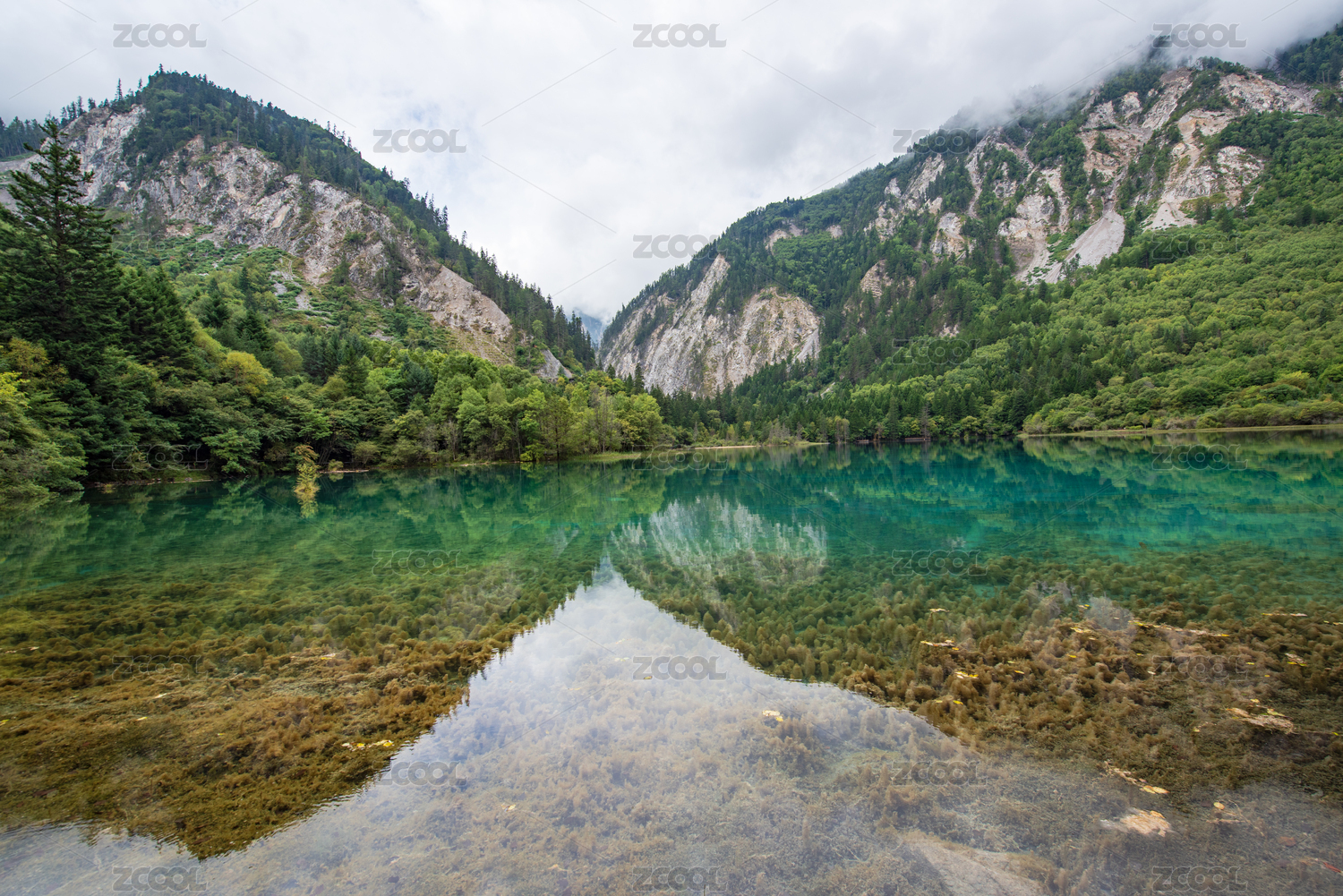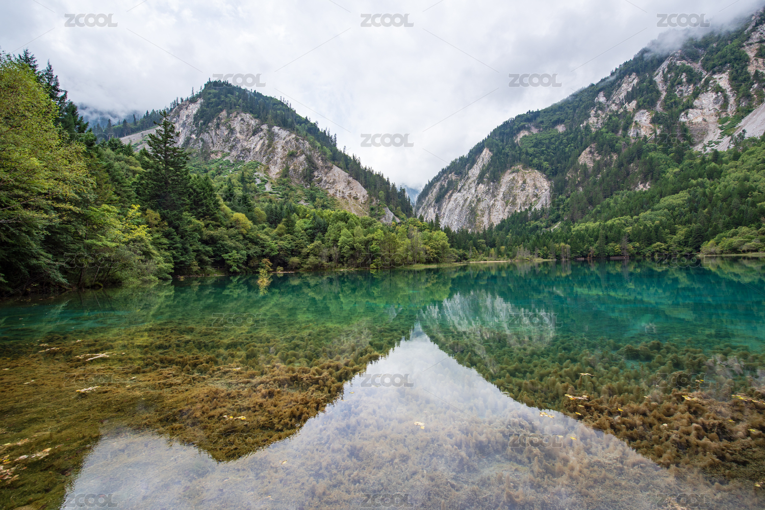 九寨沟卧龙海蓝色清澈湖泊美景
