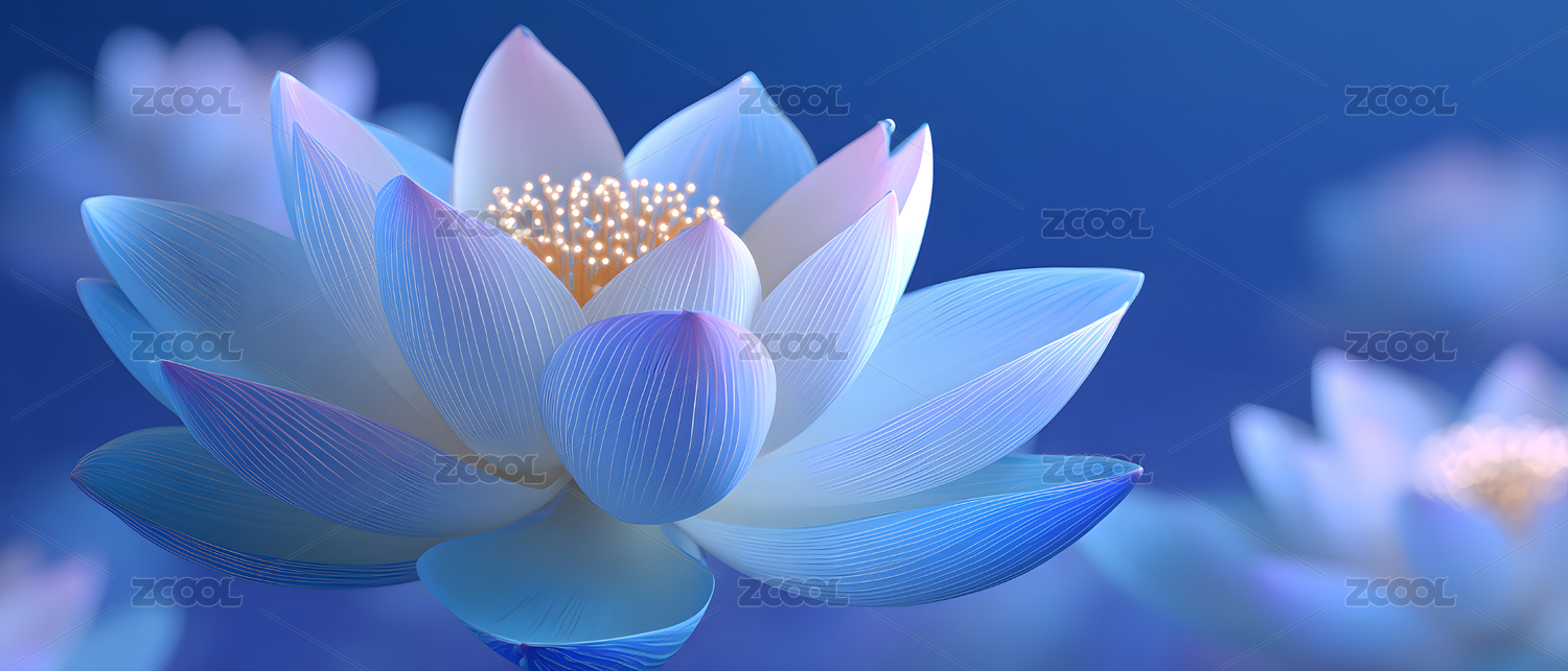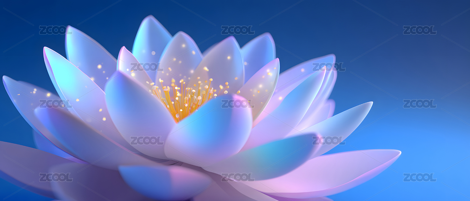 魔法发光睡莲在水塘中美丽盛开的特写插图
