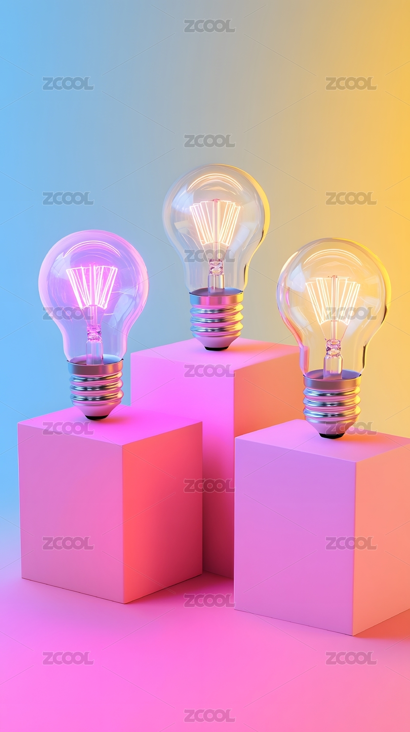 彩色渐变背景下的灯泡特写