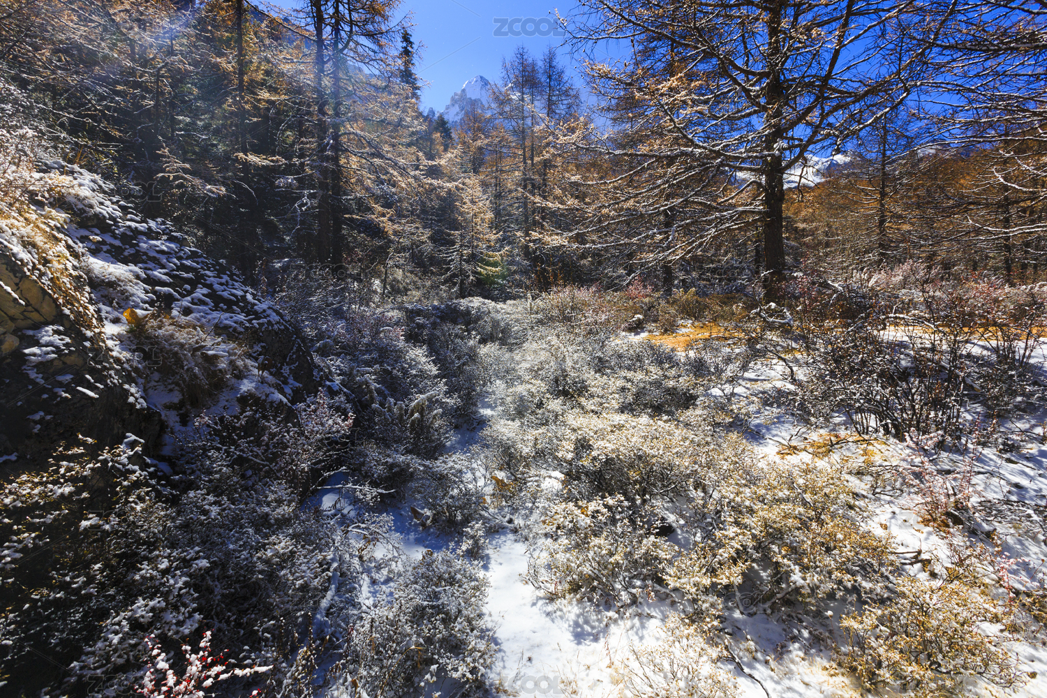 中国大兴安岭晚秋森林中的雪