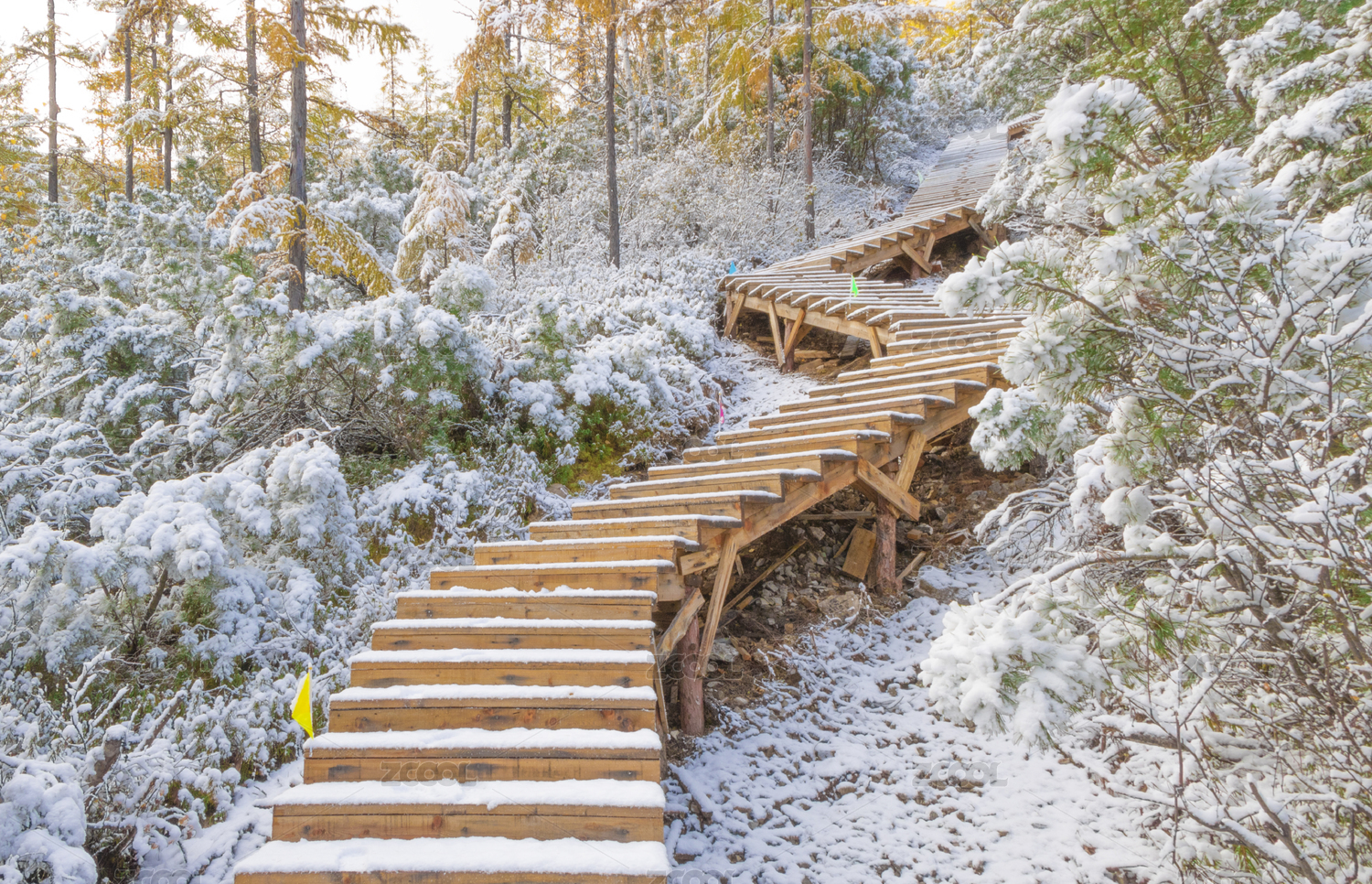 雪,台阶,阶梯,栈道,木质,树,松树,霜,冰霜,冰雪