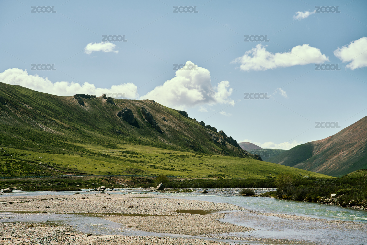 中国,甘肃,甘肃省,张掖市,祁连山,山脉,草场,河流,牦牛,牛羊