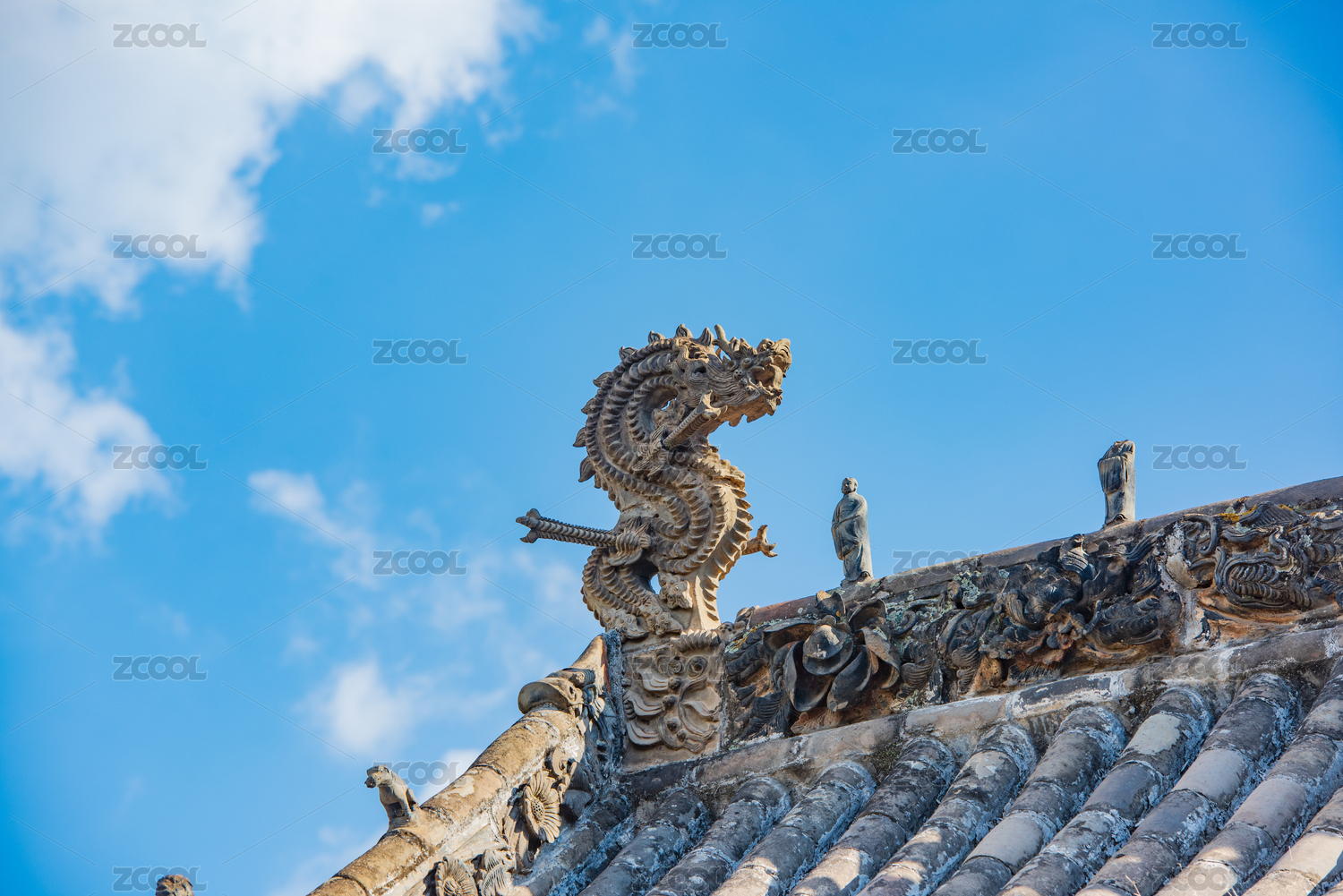 中国山西晋中灵石县王家大院屋顶龙首装饰