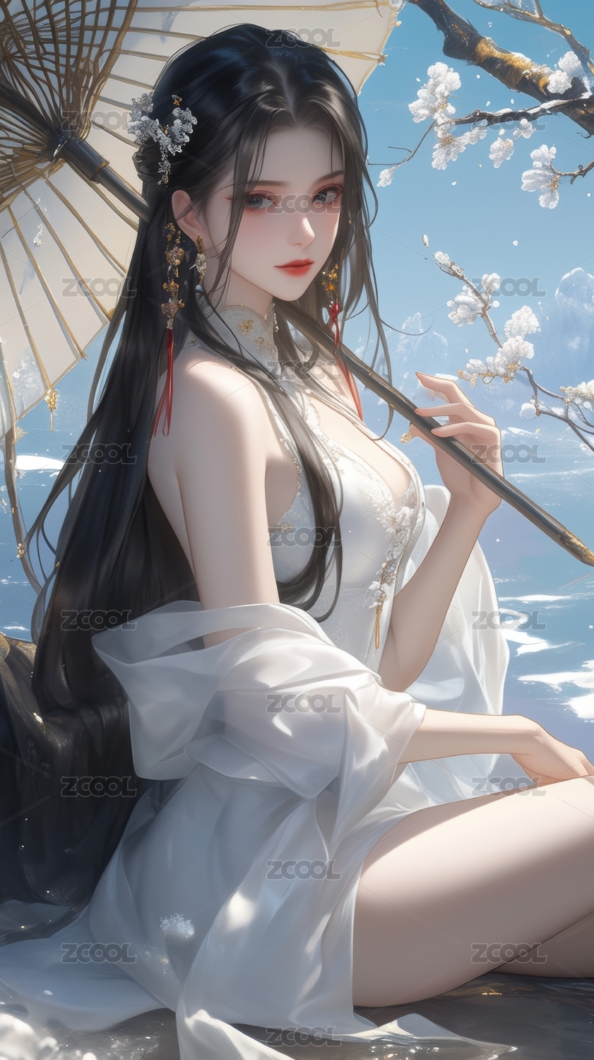 AIGCFG,中国风,中式,国潮风,美女,卡通,插画