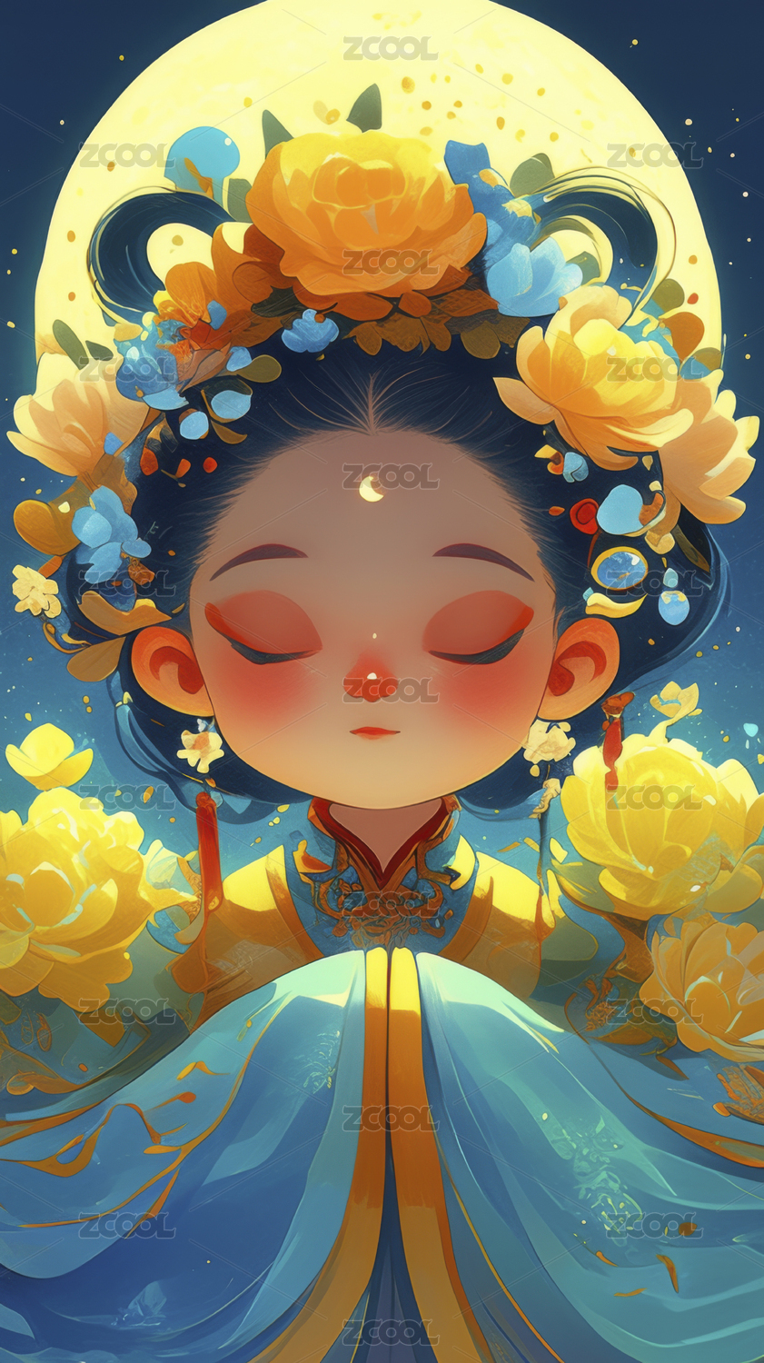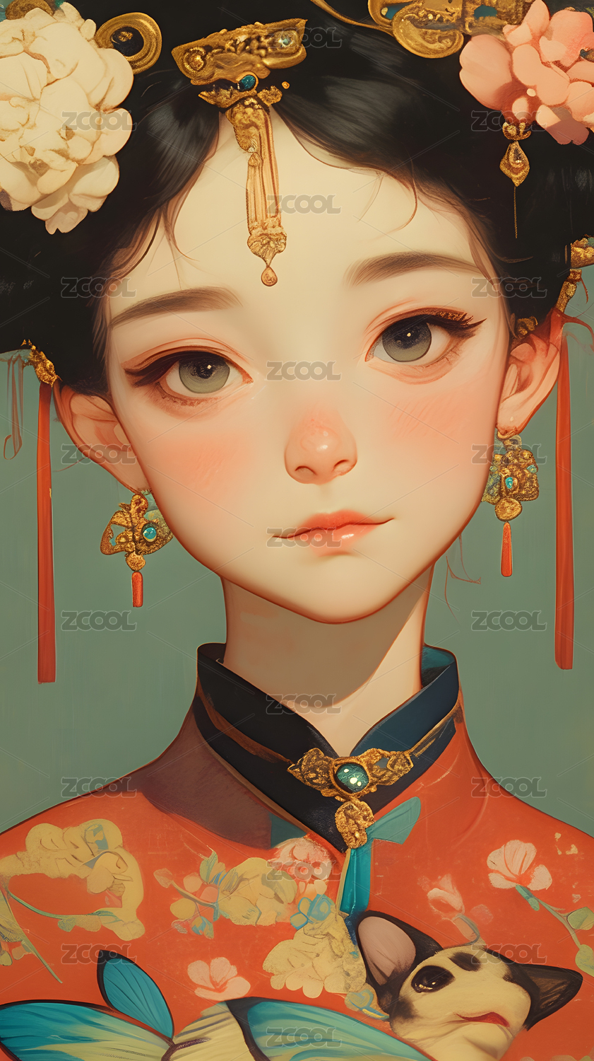 AIGCFG,中式,中国风,国潮风,插画,卡通,美女,人