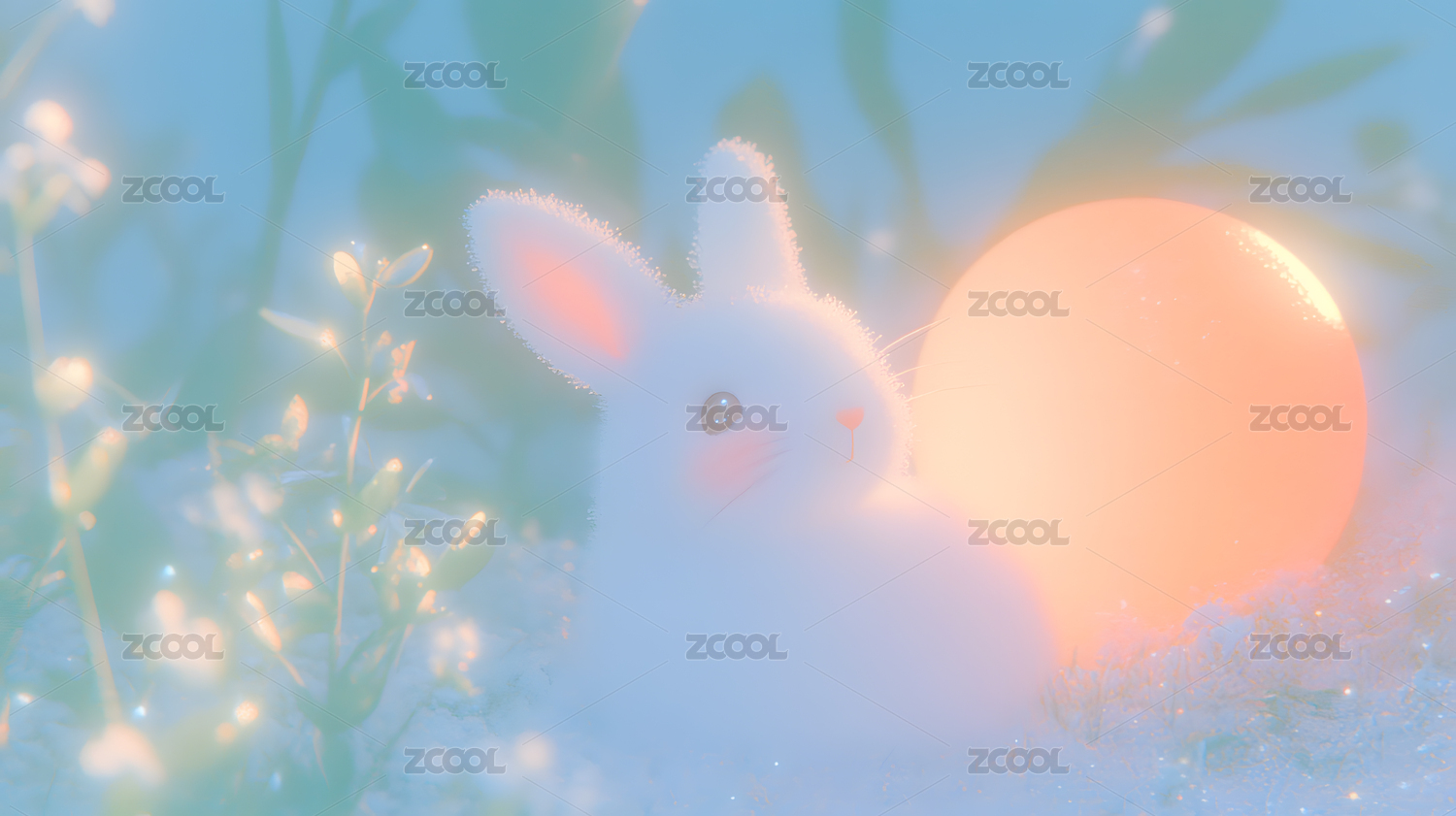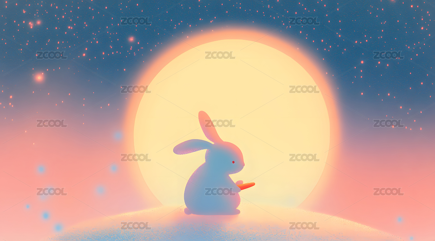 中秋节,月兔,月亮,兔子,节日,插画,唯美,清新