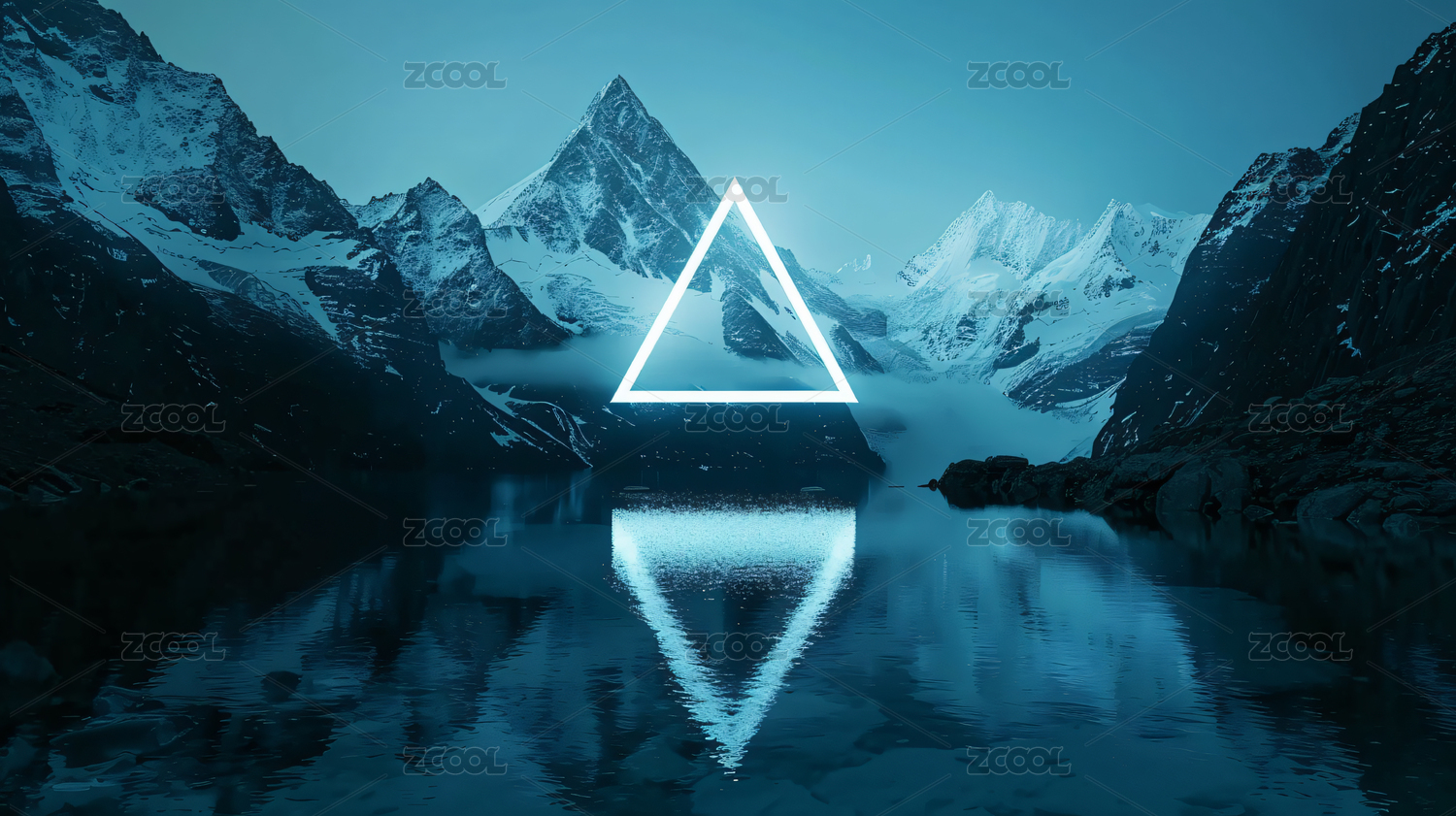 数码科技海边霓虹三角形框架抽象海报背景