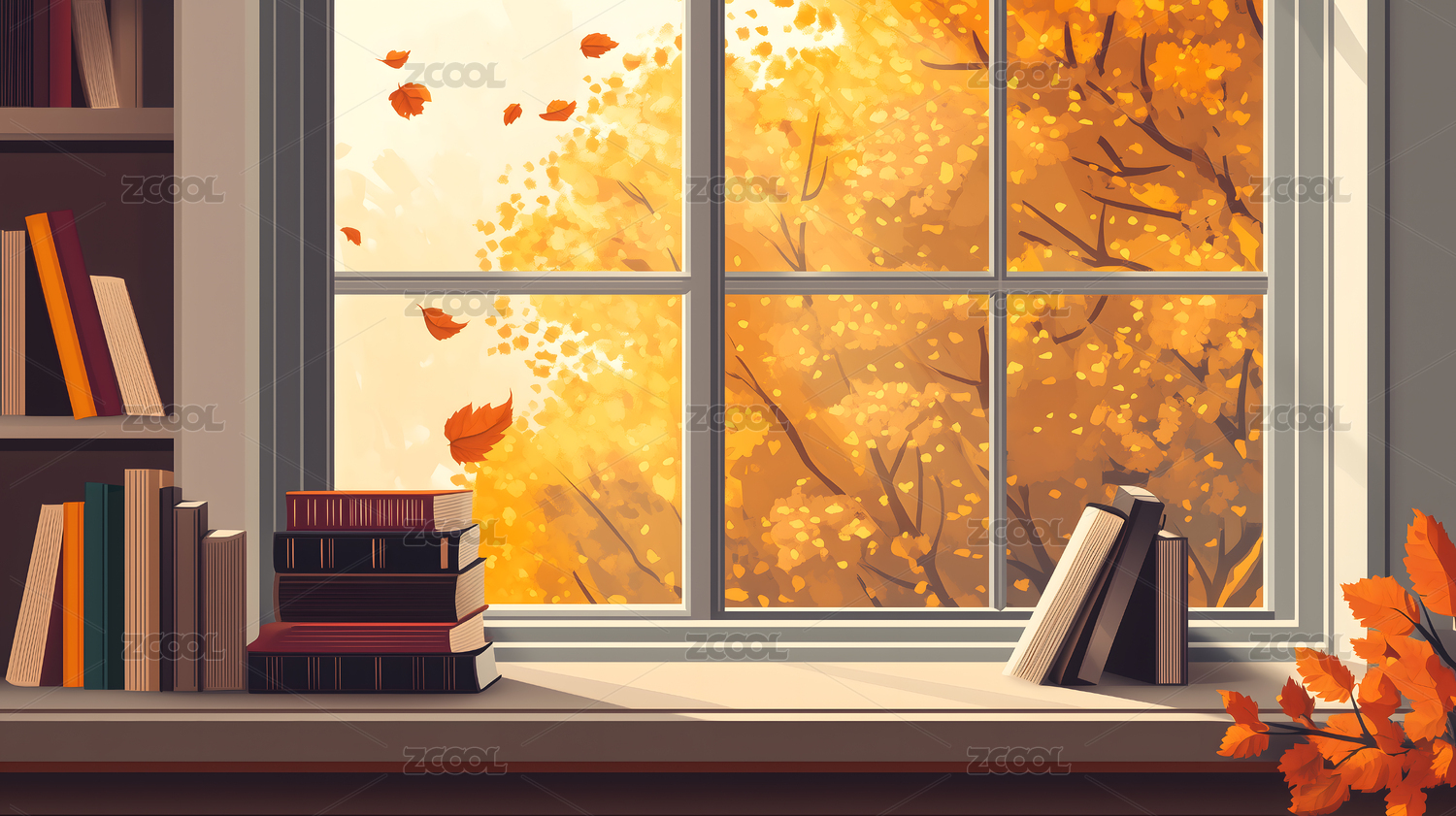 室内,建筑,空间,落叶,秋天,插画,设计,壁纸,海报,光