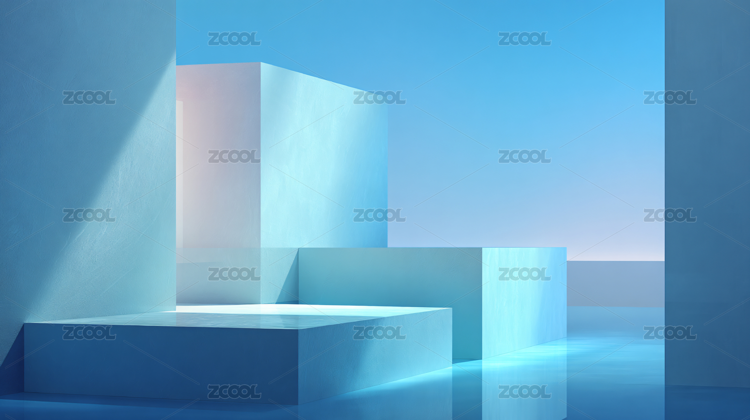 蓝色背景下桌子上的玻璃容器的特写镜头