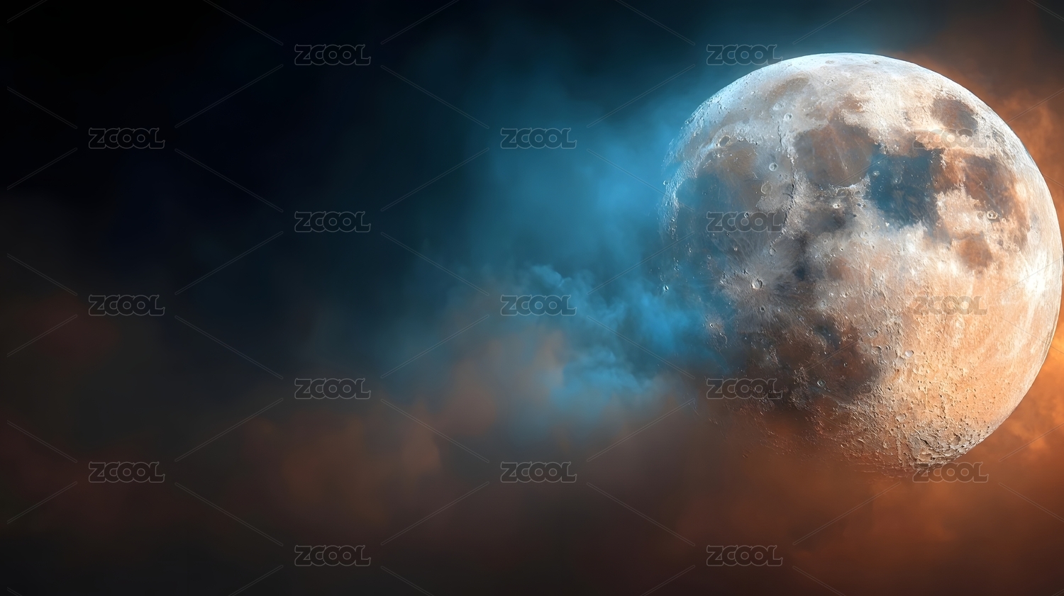 巨大月亮与云雾交织
