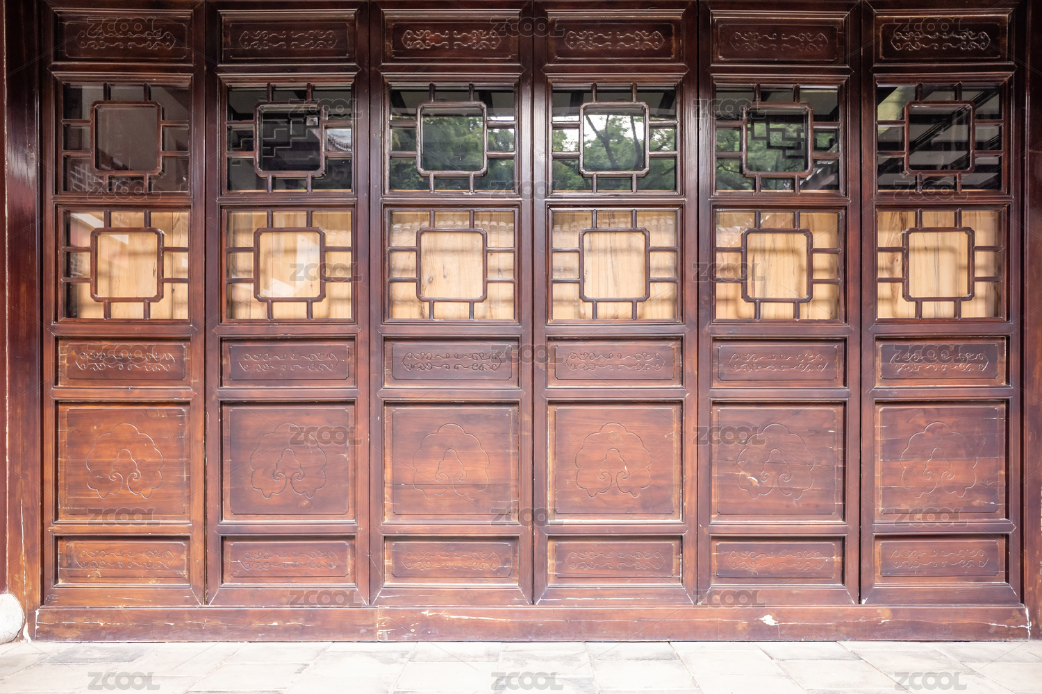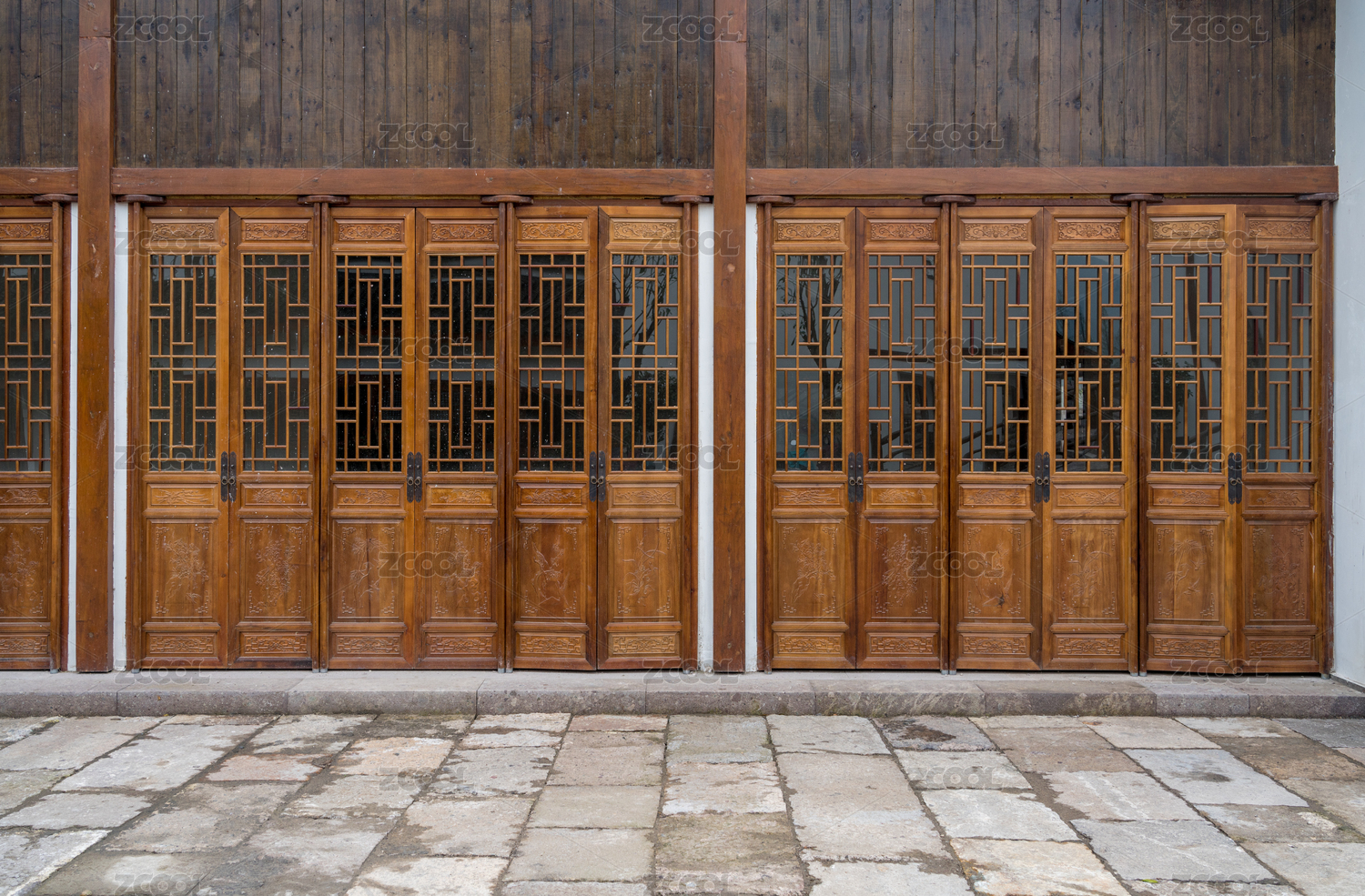 中国浙江省新昌县梅渚古镇古建筑木门特写