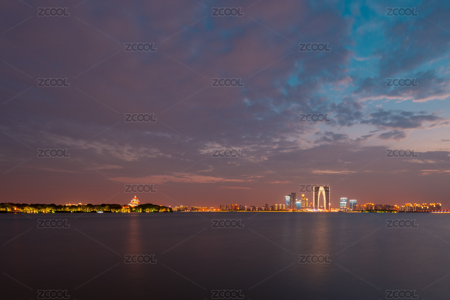 苏州现代滨水城市风光夜景
