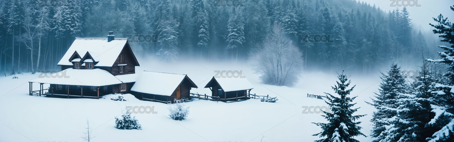 冬日雪景小屋