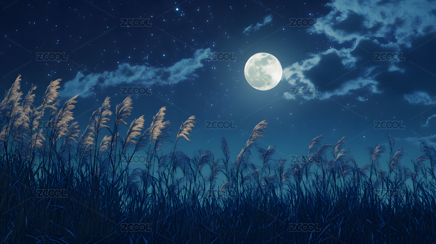 夜晚的月光与芦苇荡