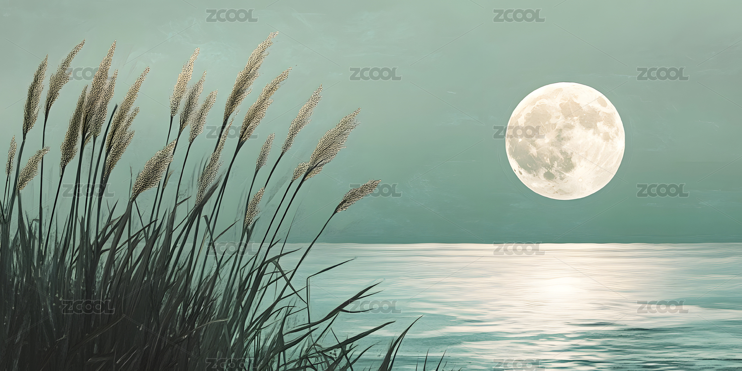 圆月夜的芦苇荡