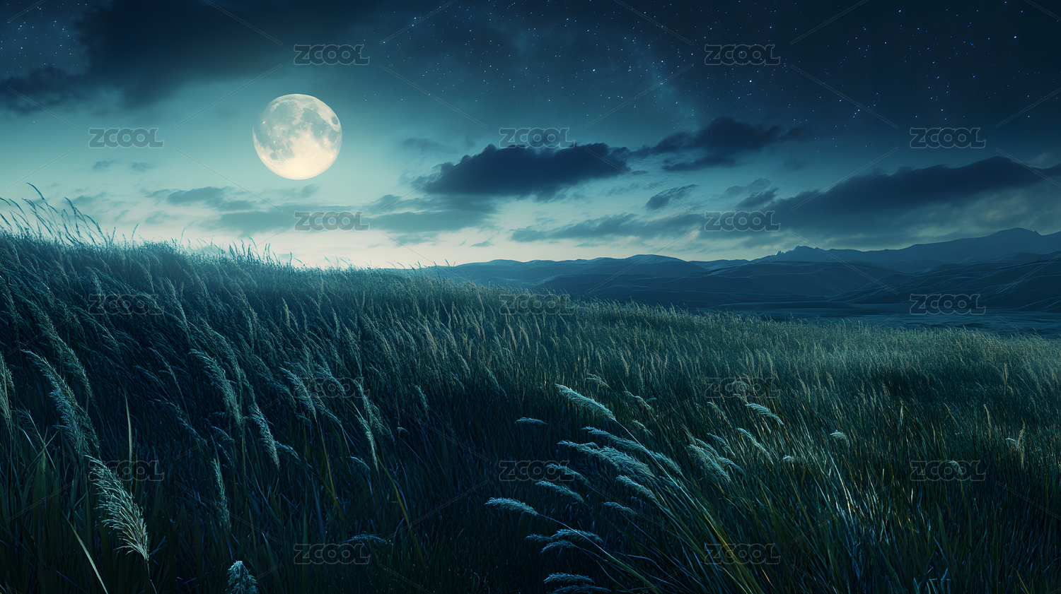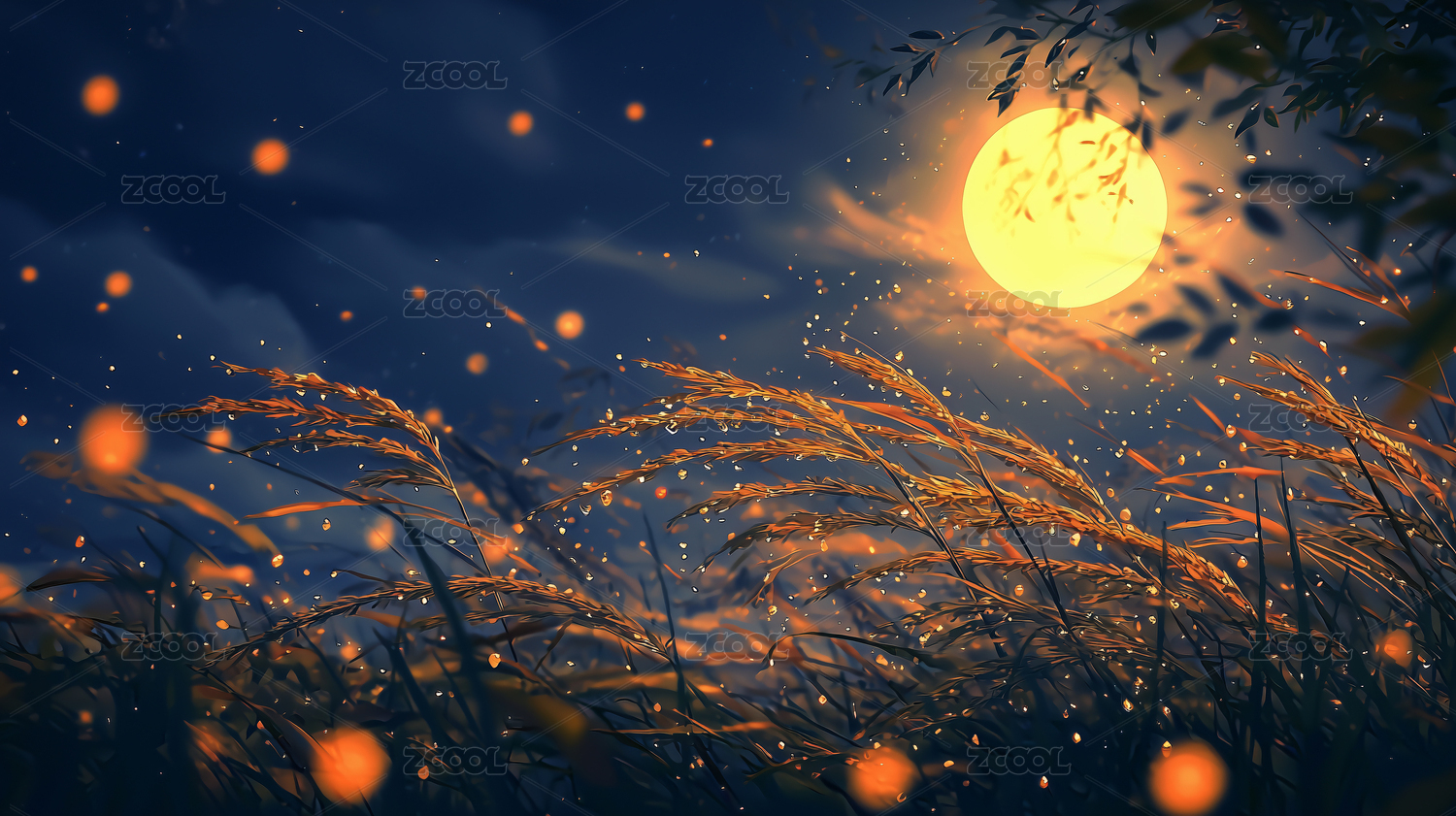月夜下的金色草丛