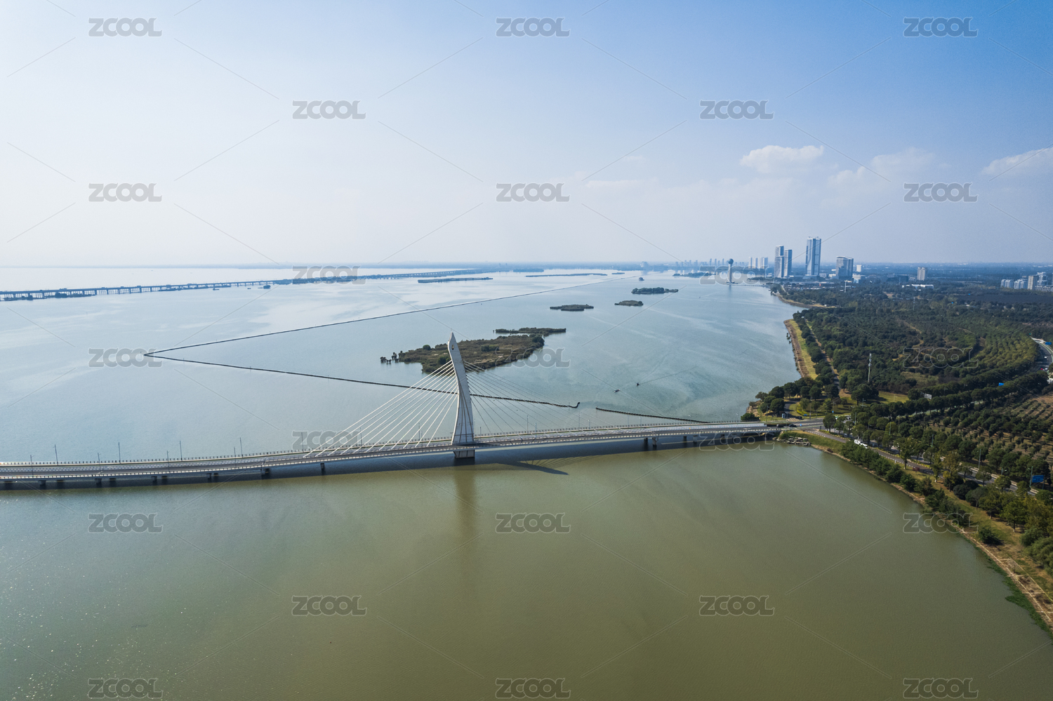 航拍中国江苏常州武进滆湖东特大桥、沪武高速与建设