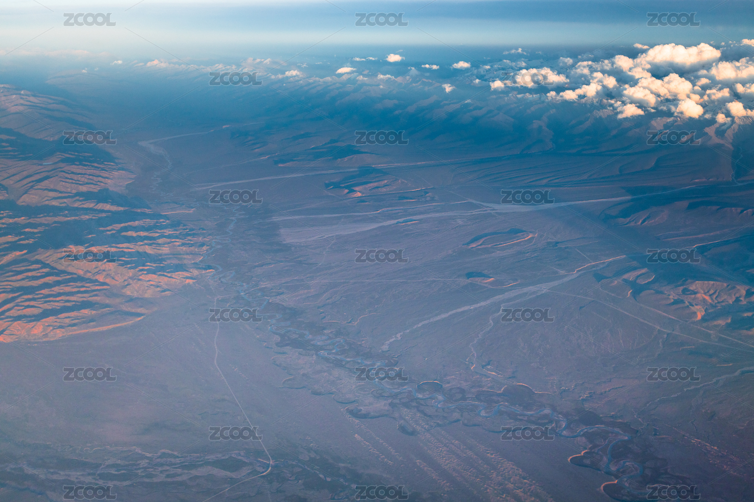 夏季傍晚时分从飞机上航拍中国新疆天山