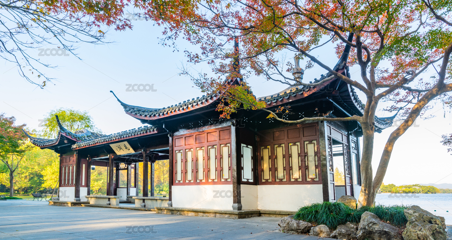 中国江苏省南京市莫愁湖公园中式凉亭建筑