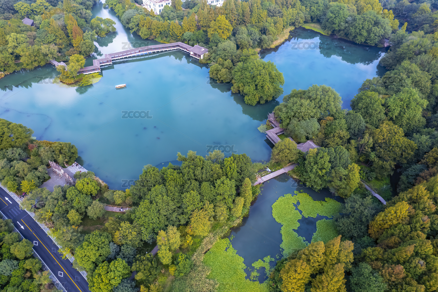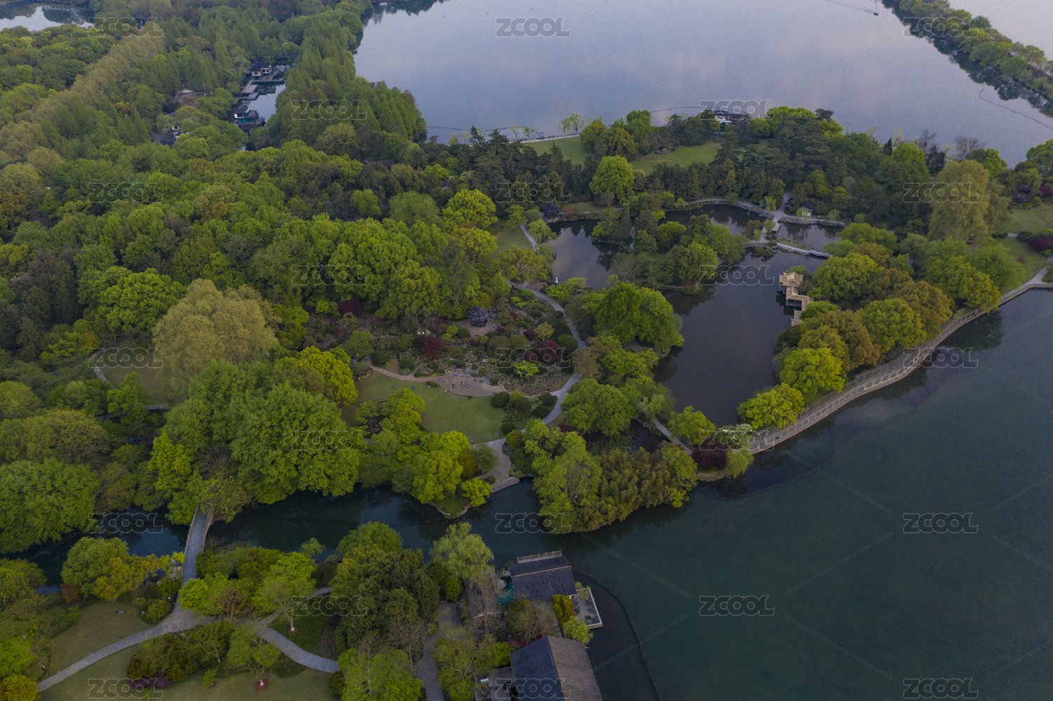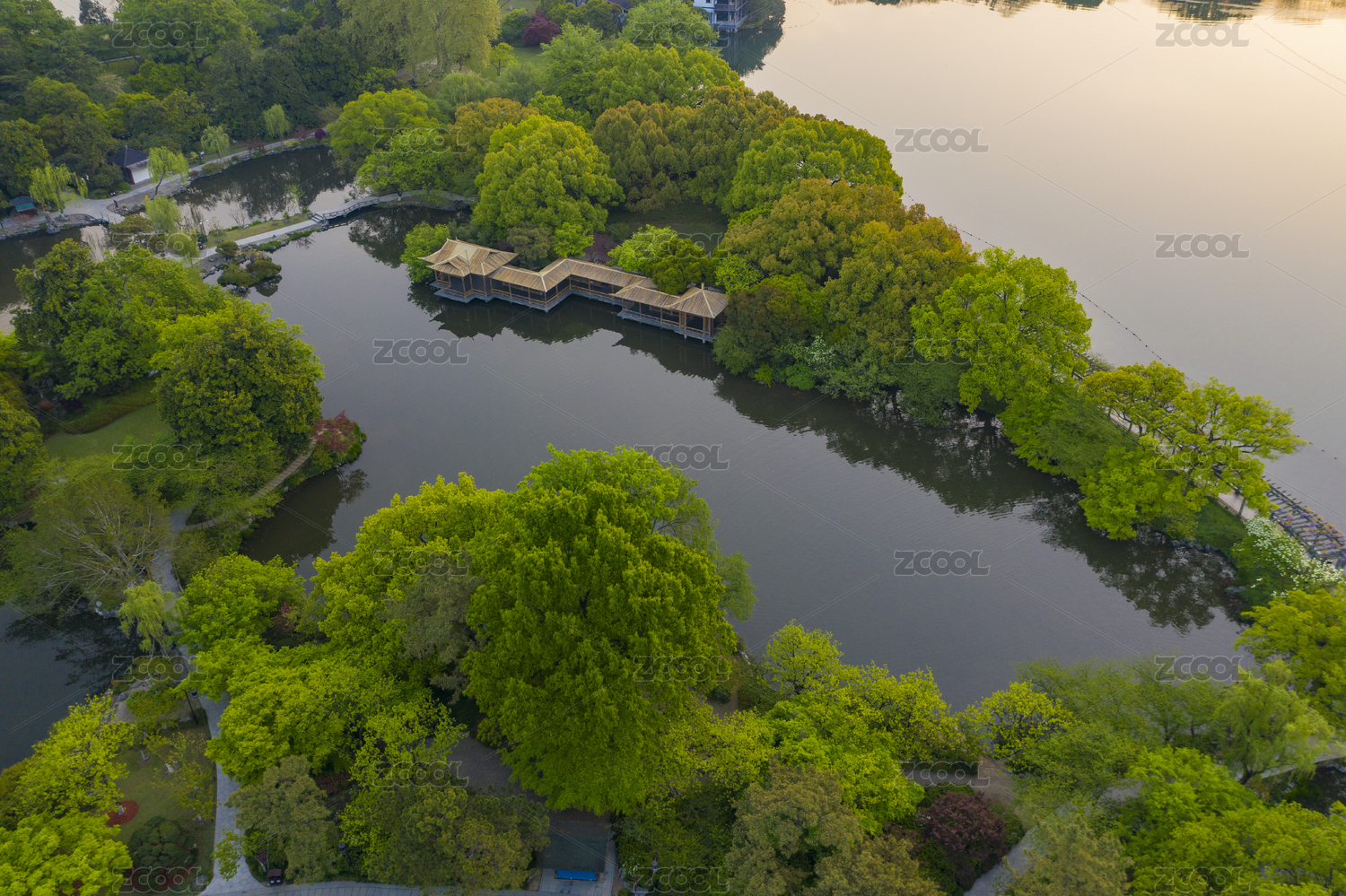 浙江,杭州,西湖,西湖十景,花港观鱼,航拍,晨曦