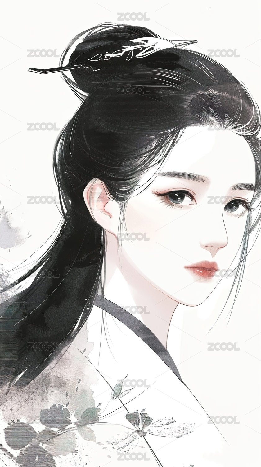 古风水墨画 少女头像