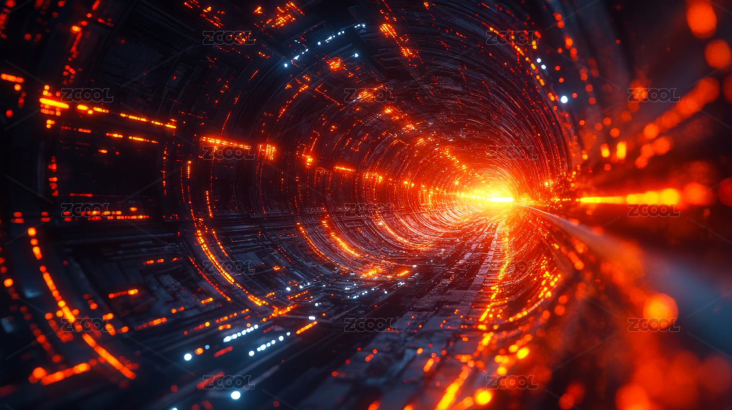 黑暗隧道发光照明抽象技术速度概念三维渲染