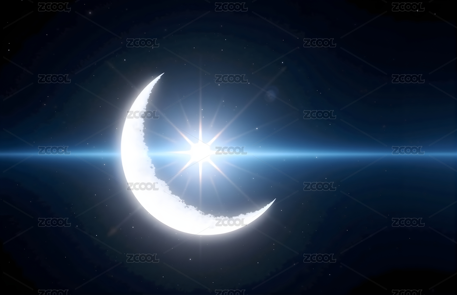 弯月,月亮,天空,星空,月球,夜空,蓝色,夜晚,月光,插画
