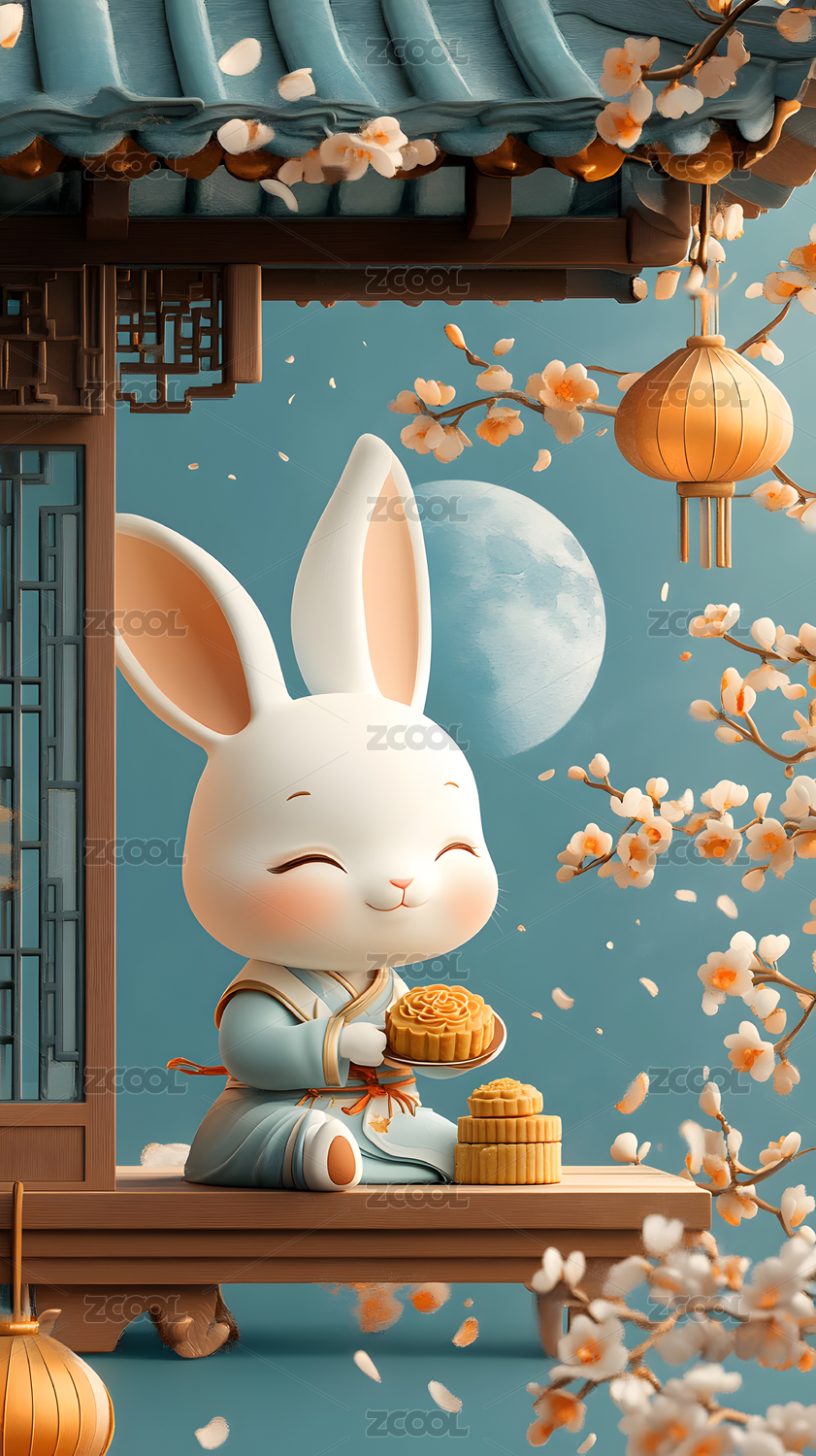 中秋节,祥云,灯笼,艺术,兔子,月饼,点心,传统,月兔,可爱