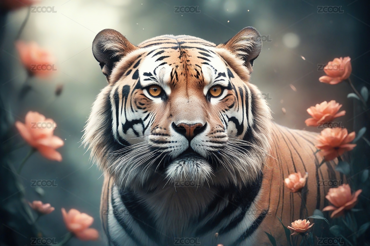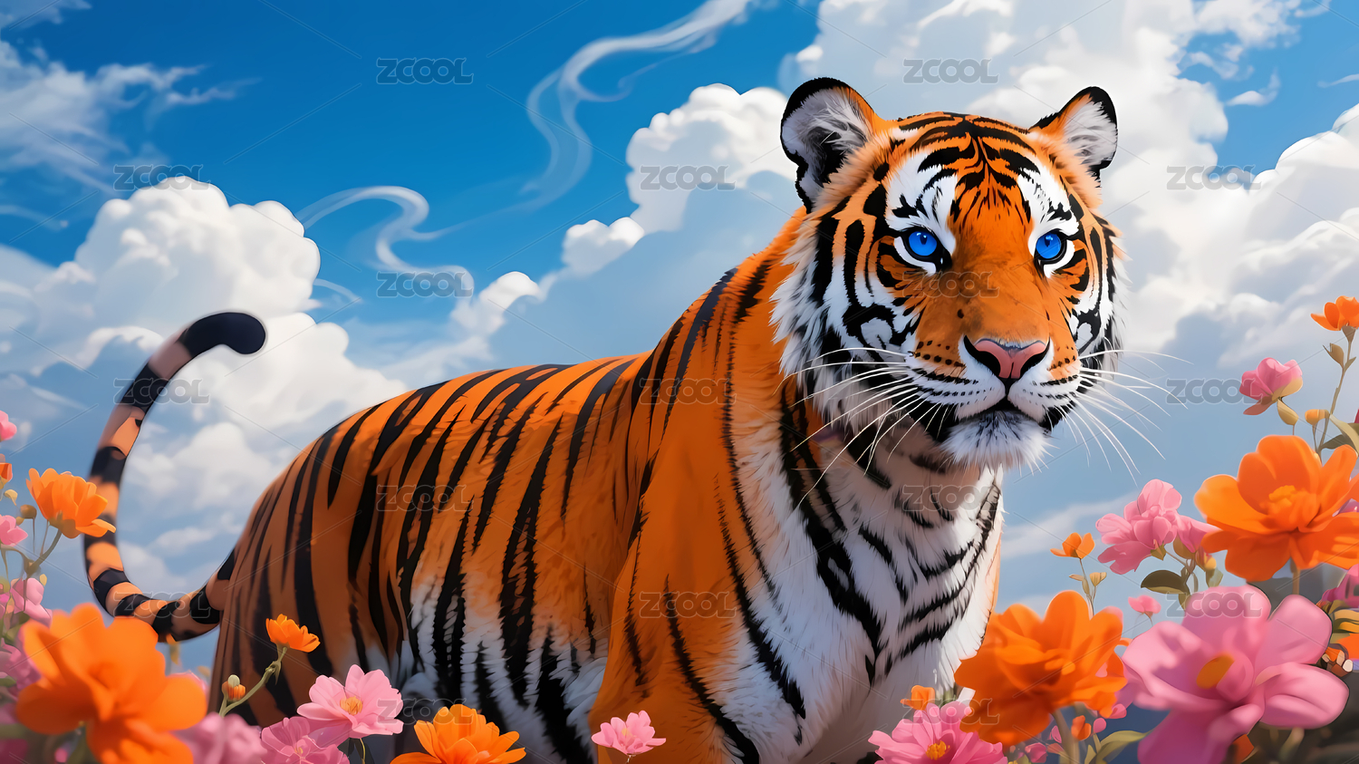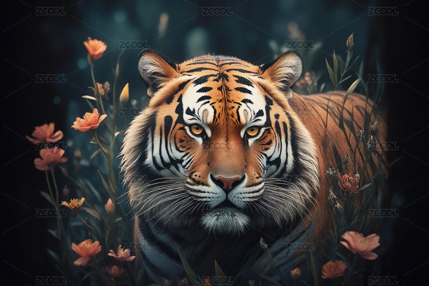 老虎与花朵主题