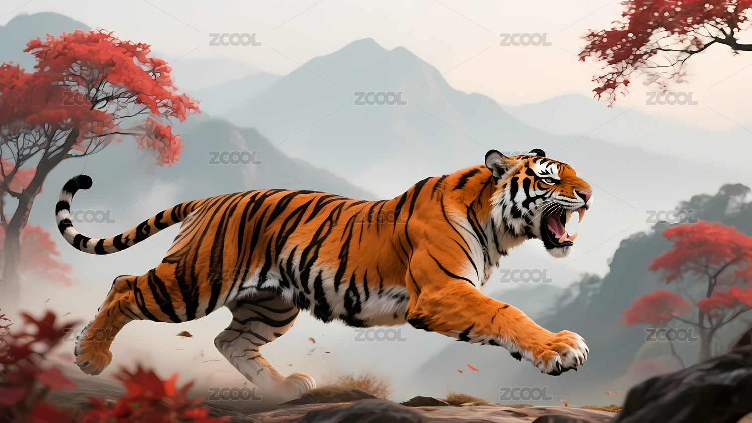 秋色虎啸林间静卧