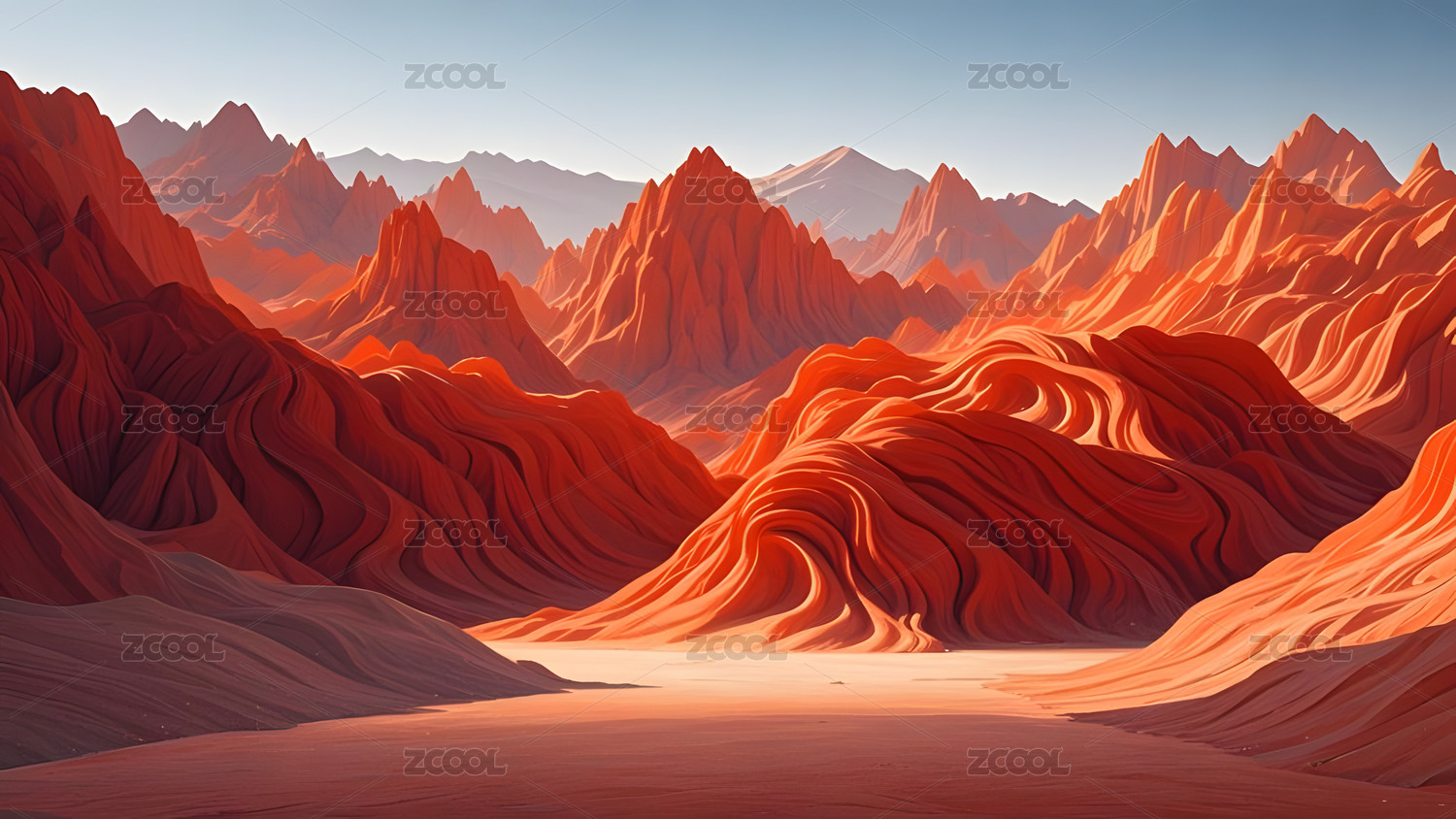 3D, 渲染, 抽象, 自然, 水彩, 阳光, 梦幻,红色, 山脉, 奇幻