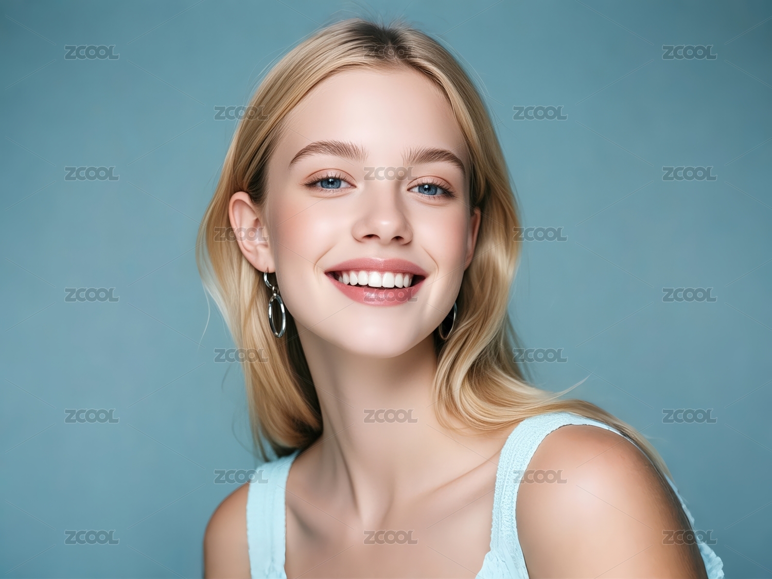 年轻漂亮的欧美女性微笑快乐半身肖像
