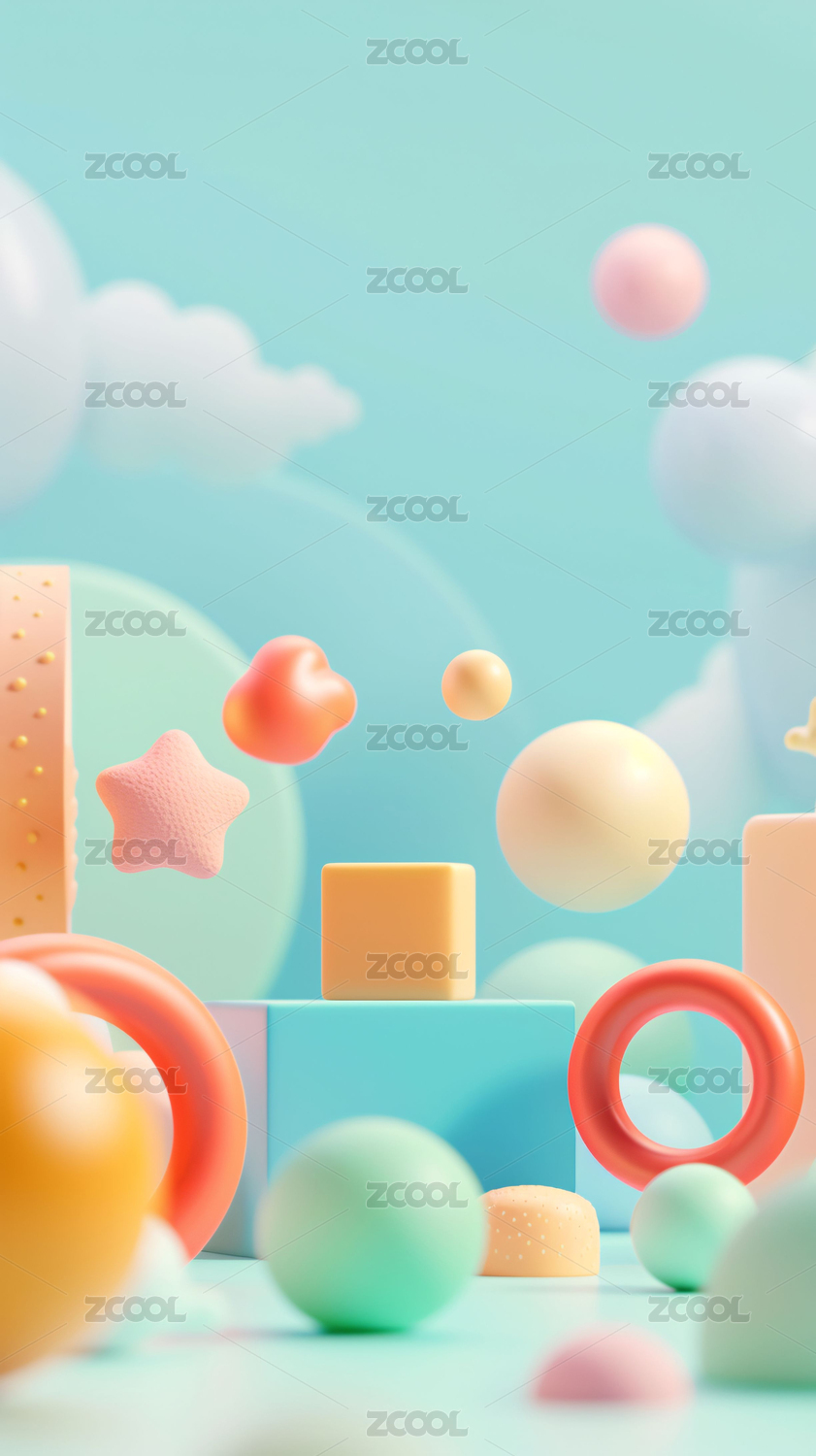 几何体错落堆放竖版材质壁纸3D渲染时尚