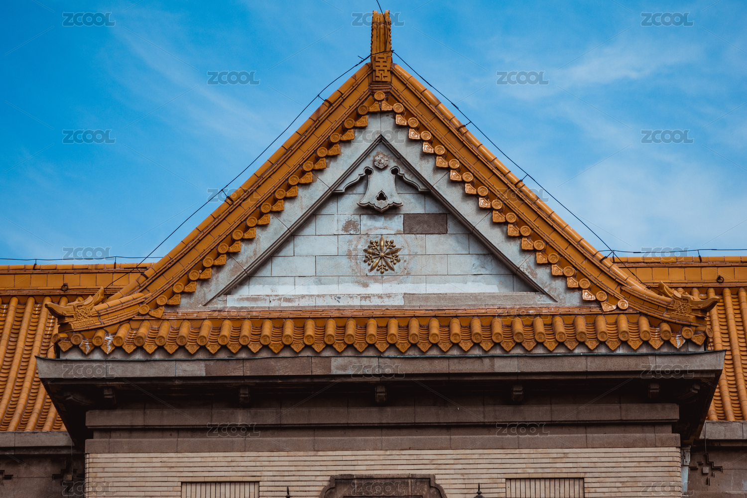 中国广东广州中山纪念堂的中式复古建筑一角特写