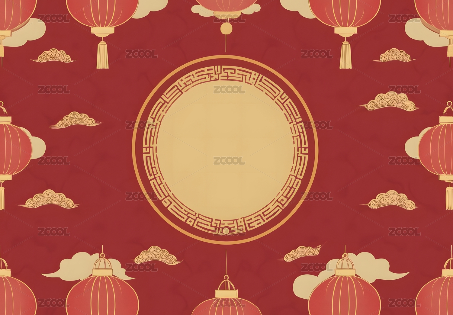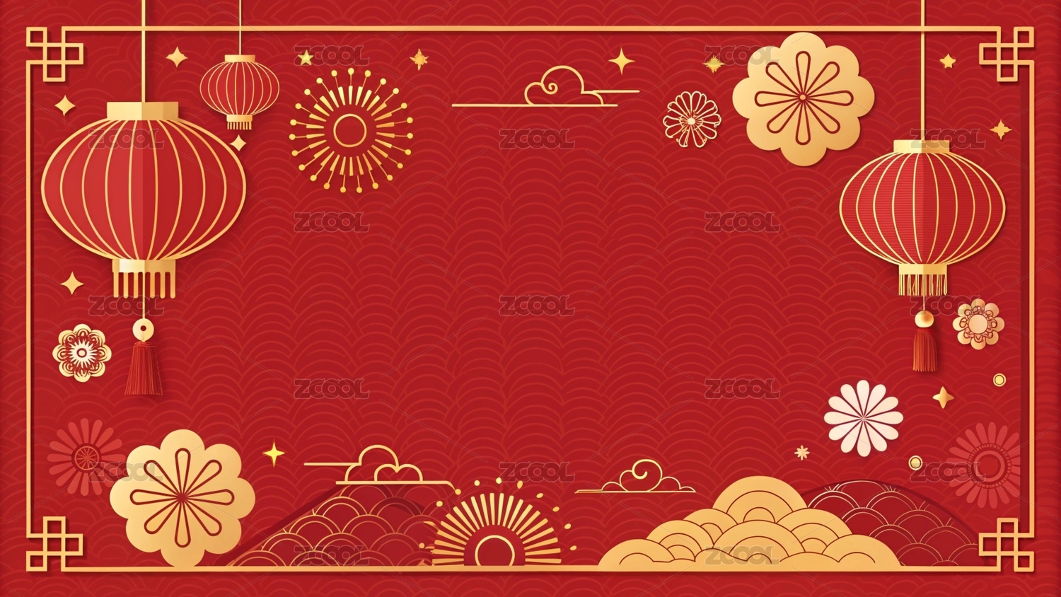 红色喜庆有灯笼传统元素及产品平台的新年背景