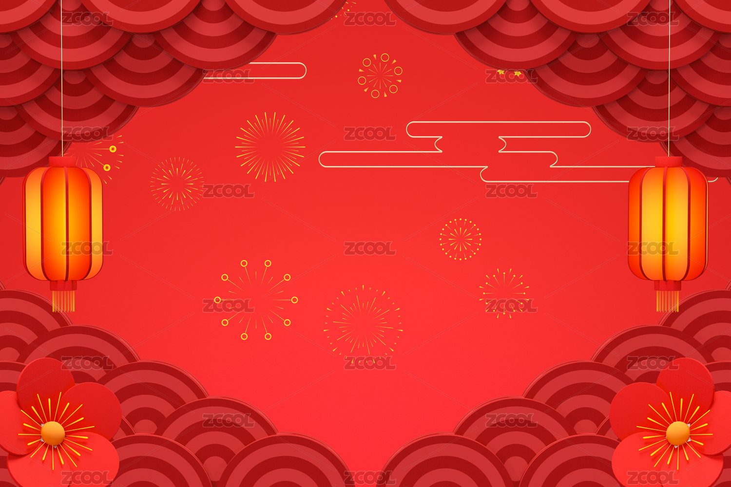 新年喜庆灯笼祥云烟花爆竹大气红色海报背景