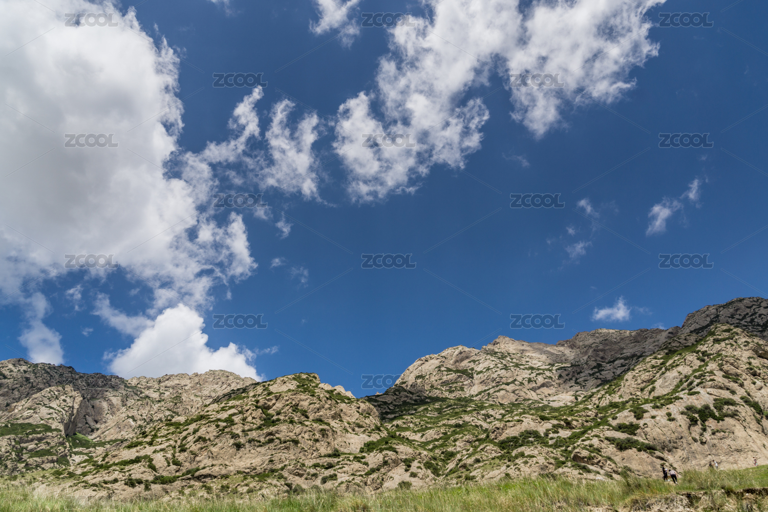 中国新疆夏季蓝天白云下G217独库公路沿途高山草原