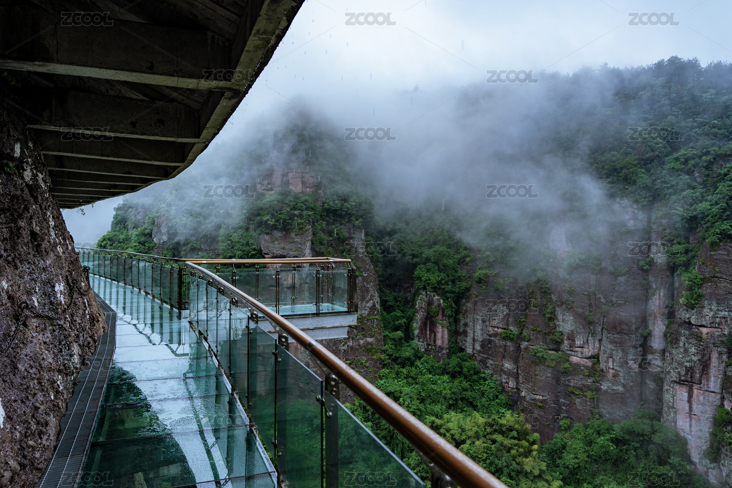 架设在大山中的玻璃桥局部