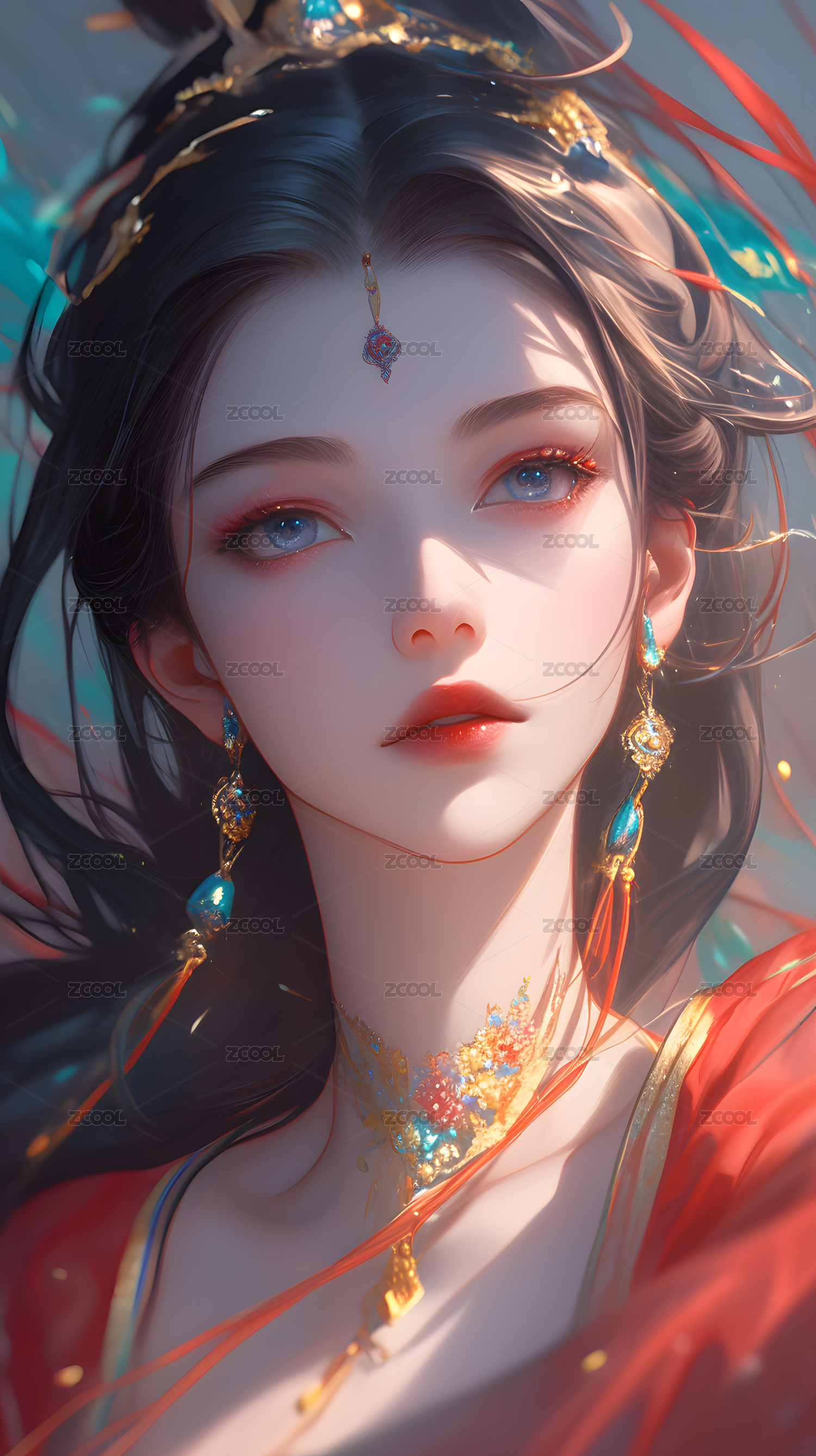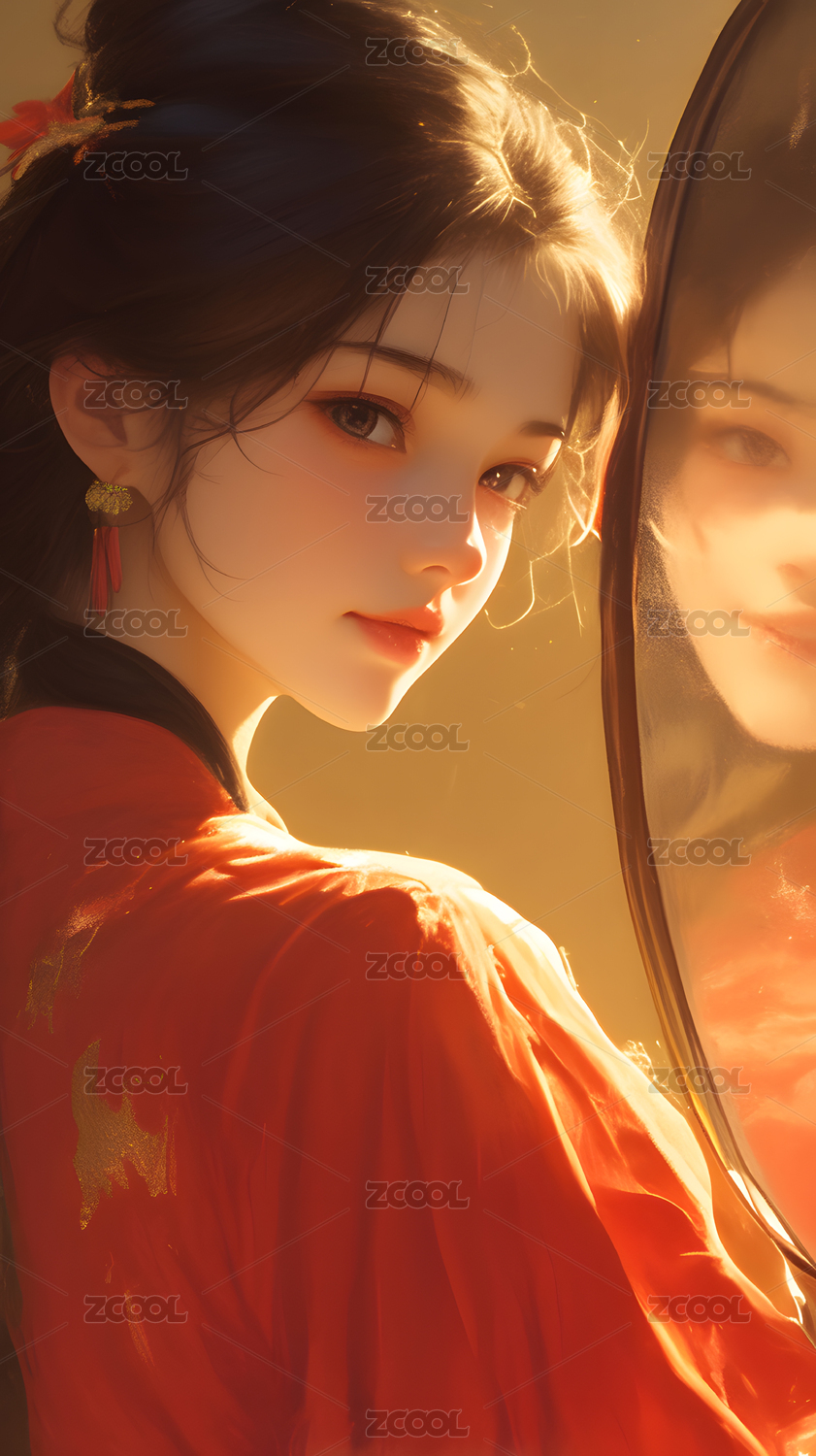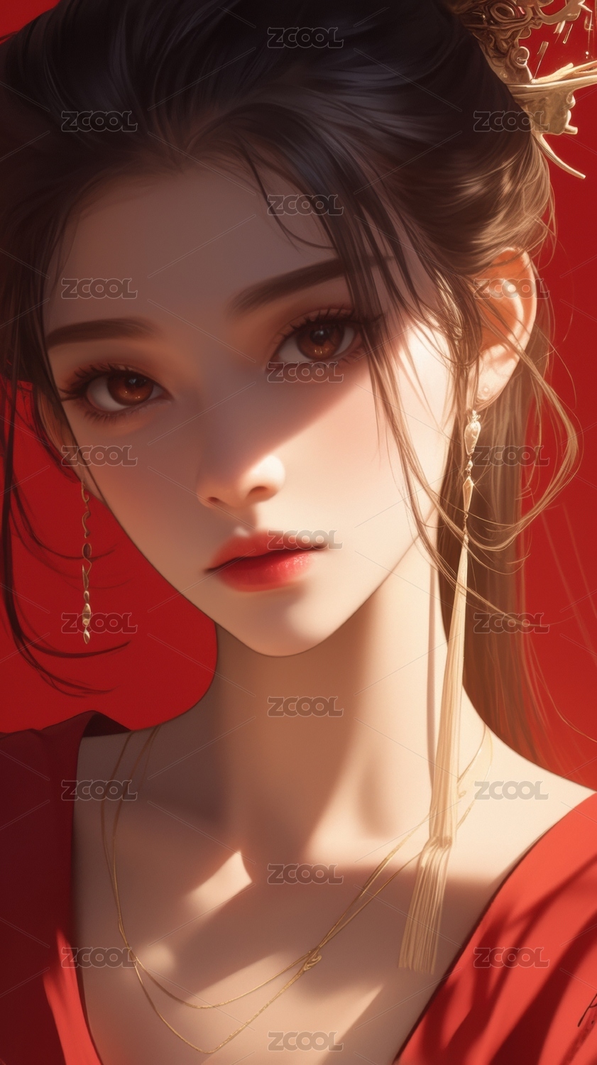 古风,女子,唯美,插画,红衣,数字艺术,人物,东方,肖像,优雅