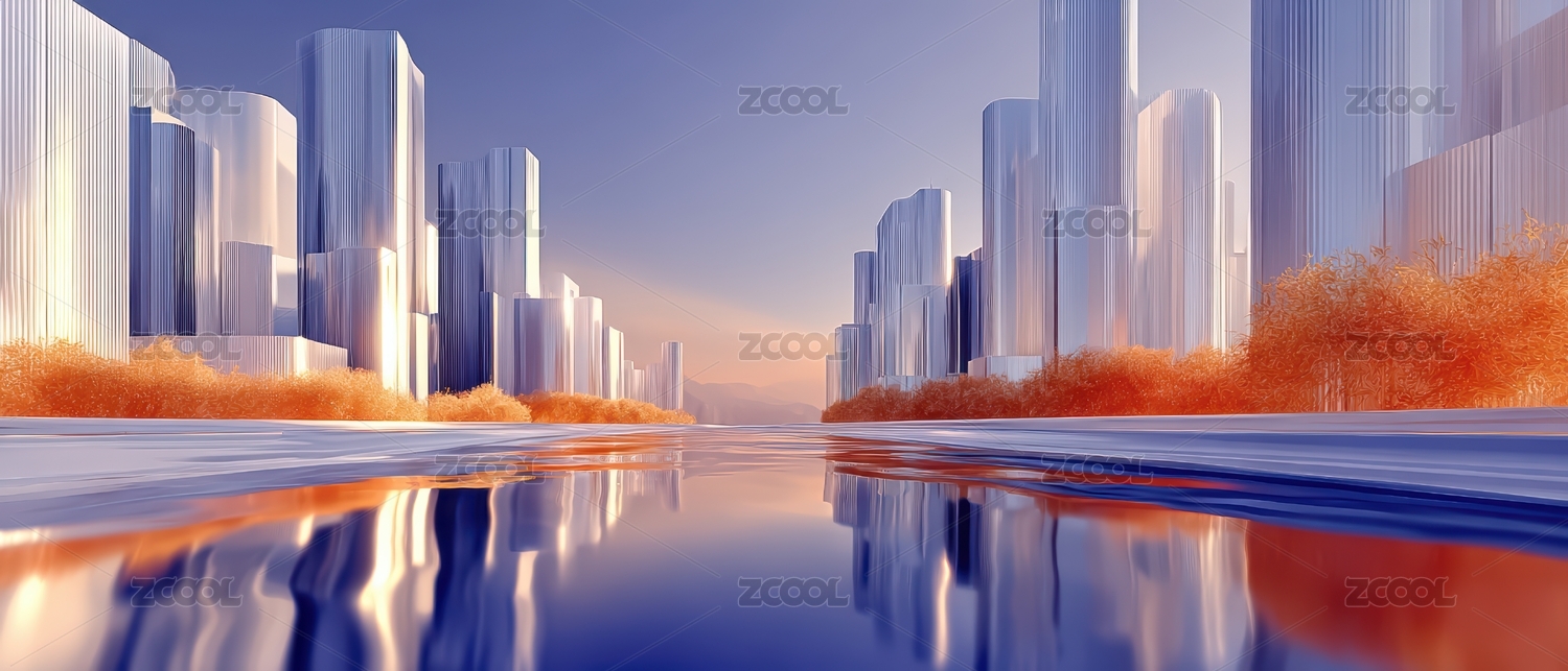 玻璃高楼与水面倒影的梦幻融合