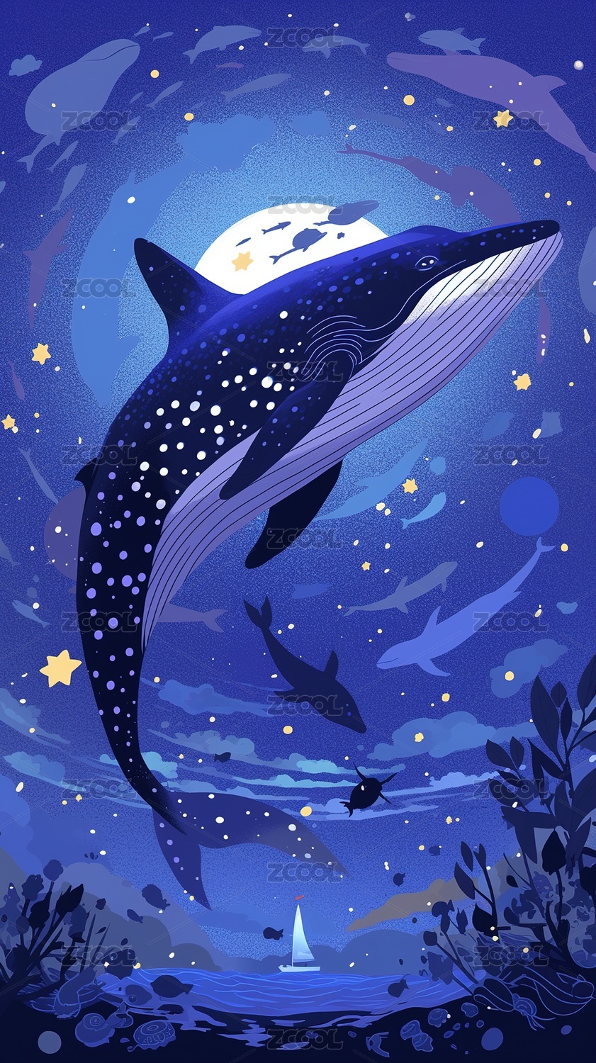 鲸鱼,女孩,星球,触摸,星空,神秘,治愈系,蓝色,天空