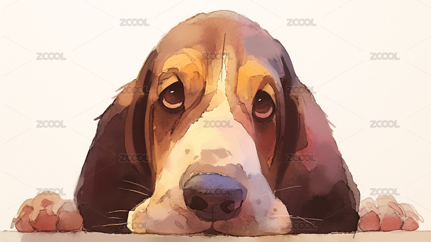 治愈系水彩手绘风格开心微笑的狗狗插画