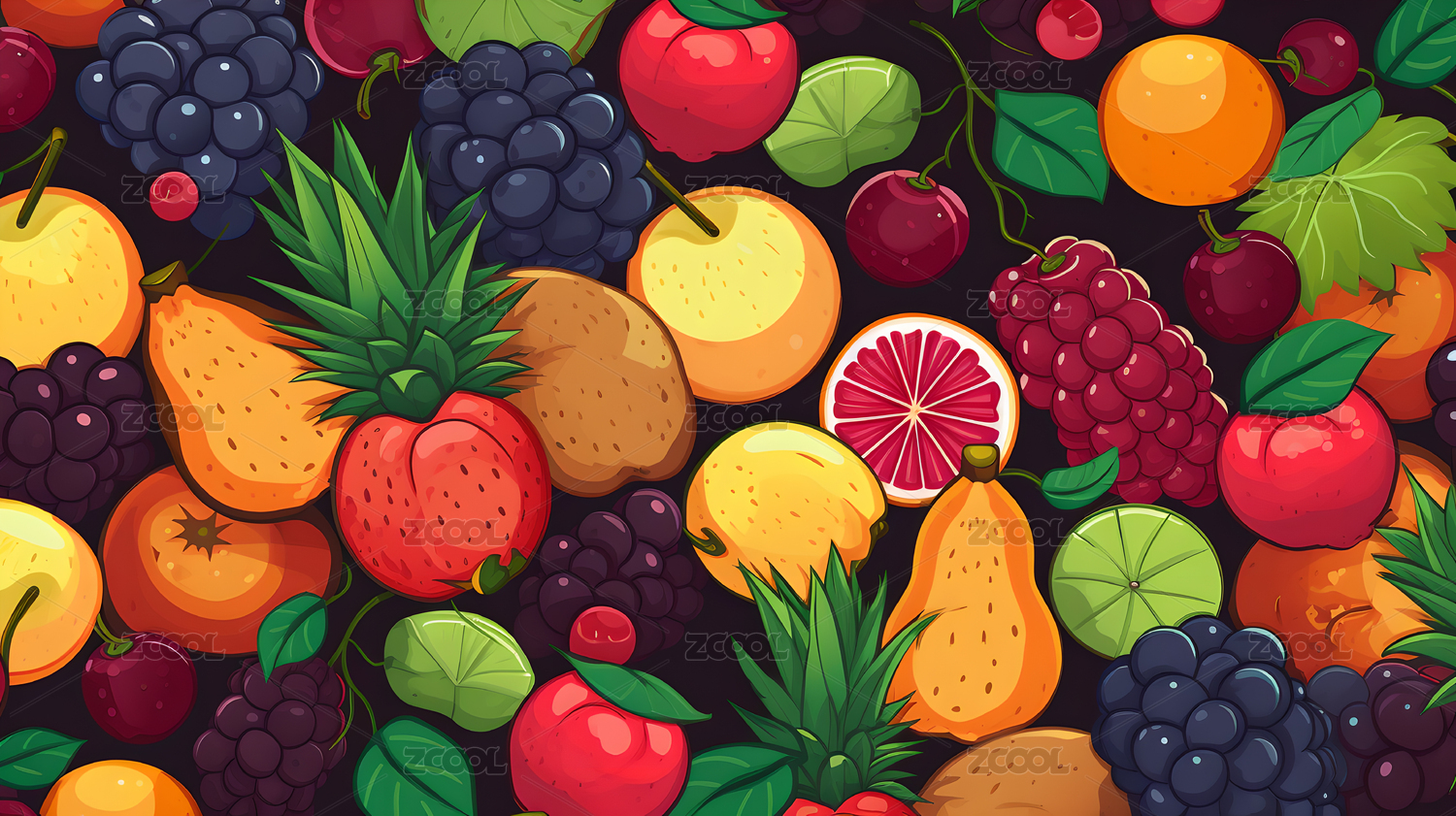 热带鲜美水果插画