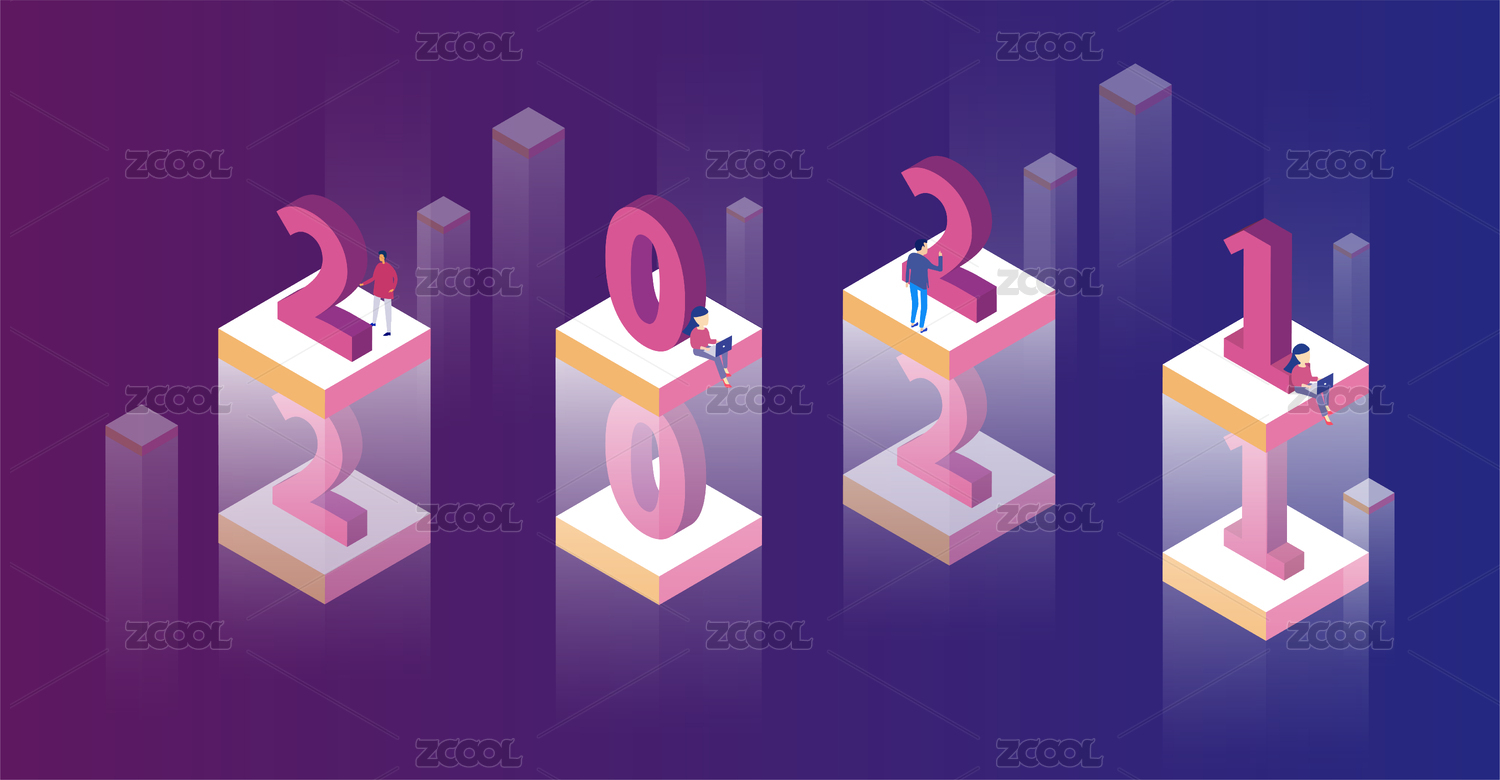 2021创意数字2.5D矢量插画